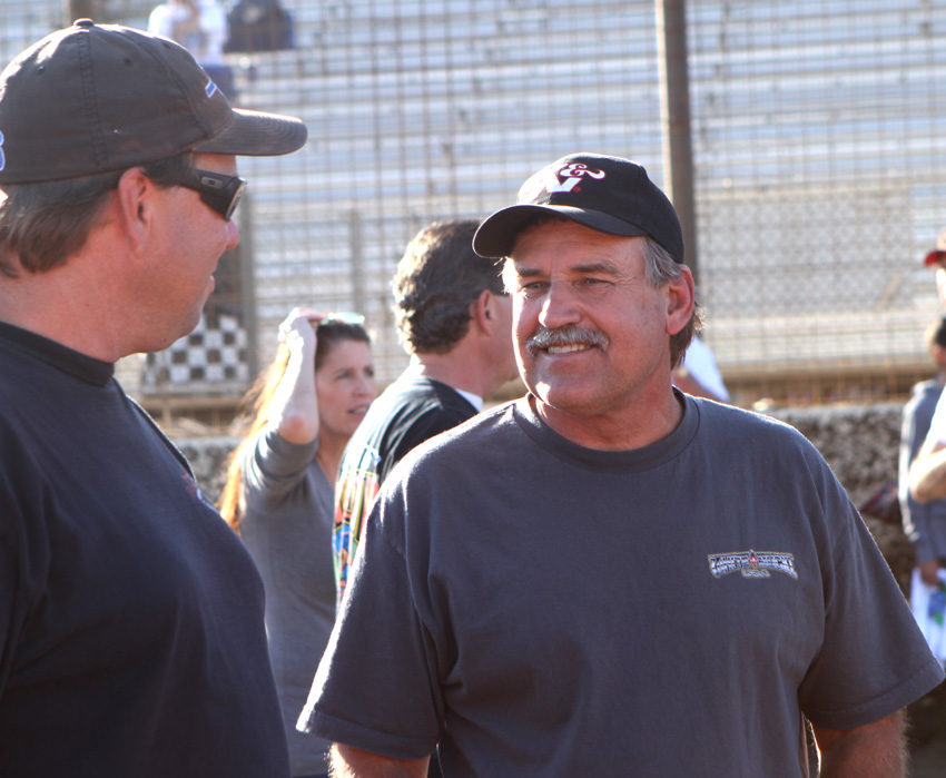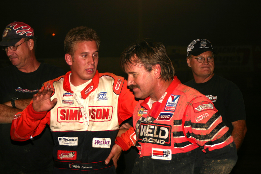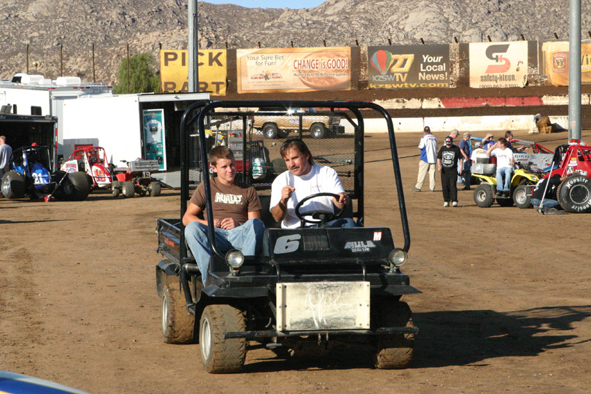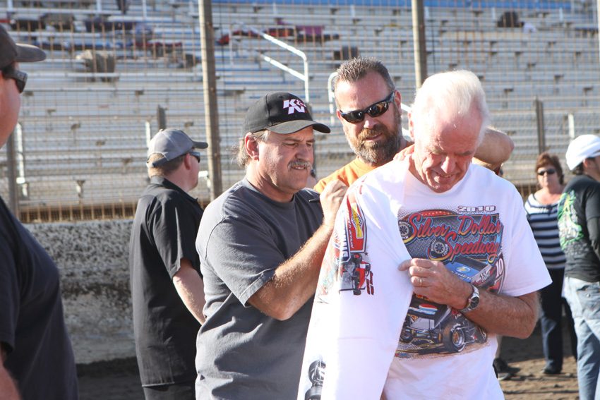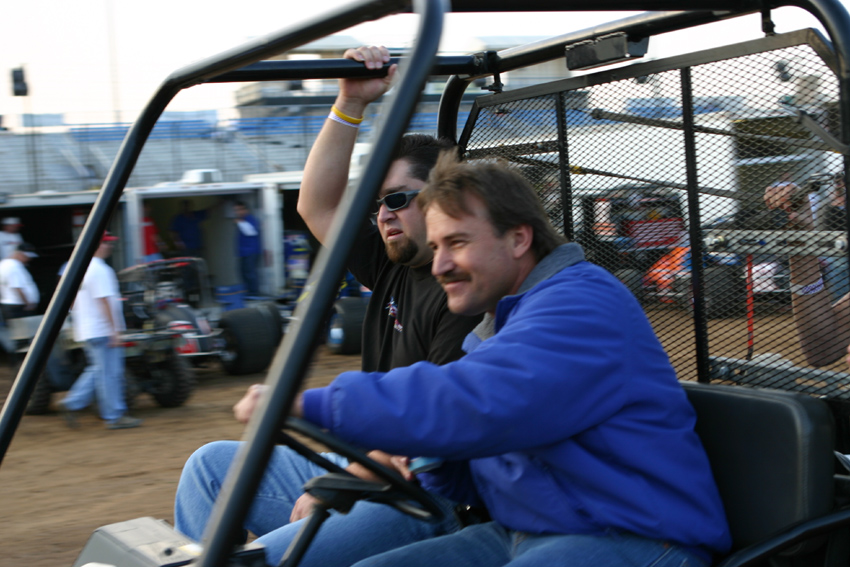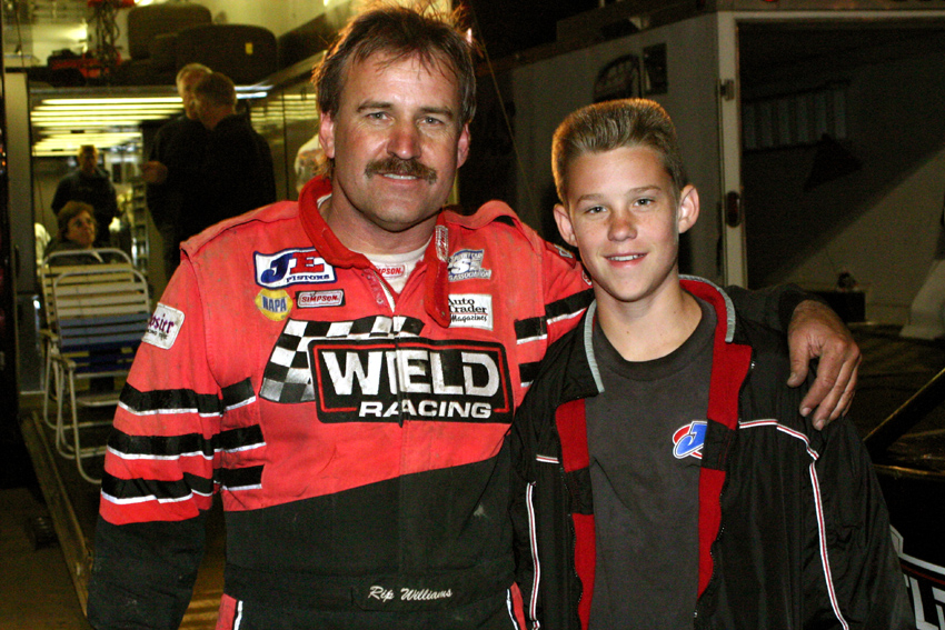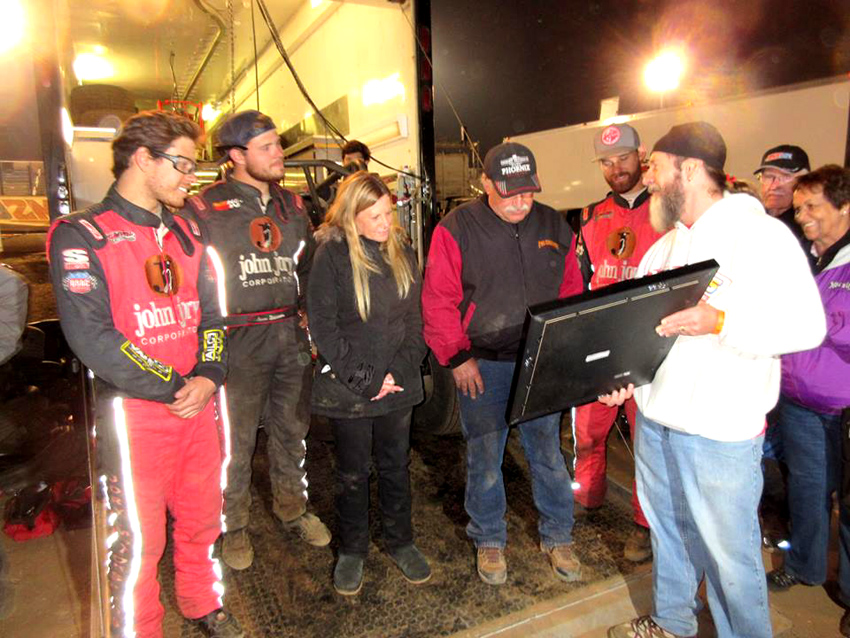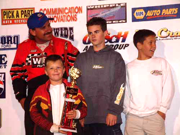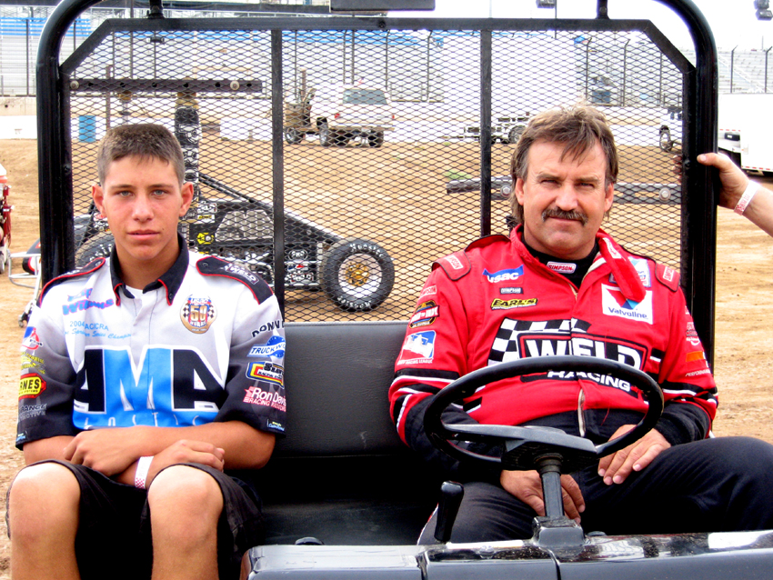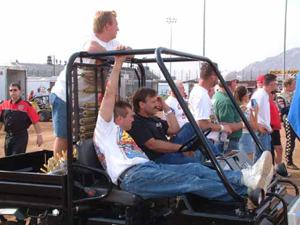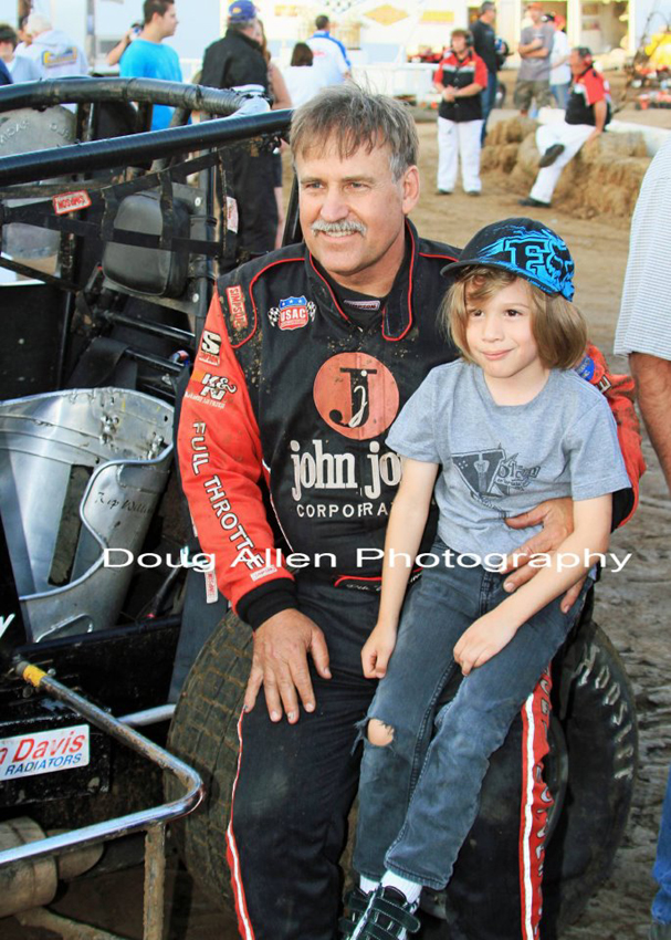 Rip after a win in the DSD car. Car owner Frank Lewis is behind him in the black jacket