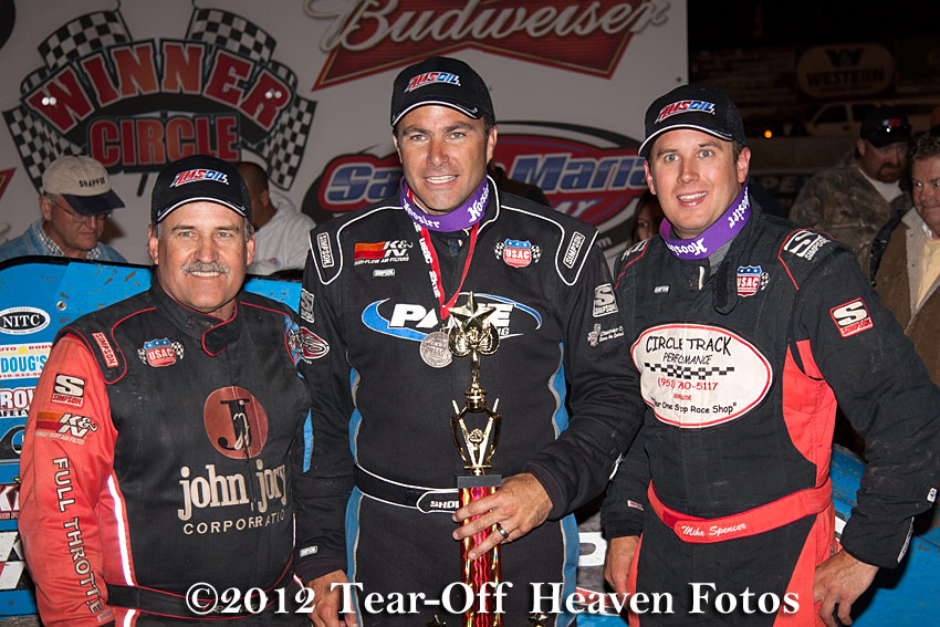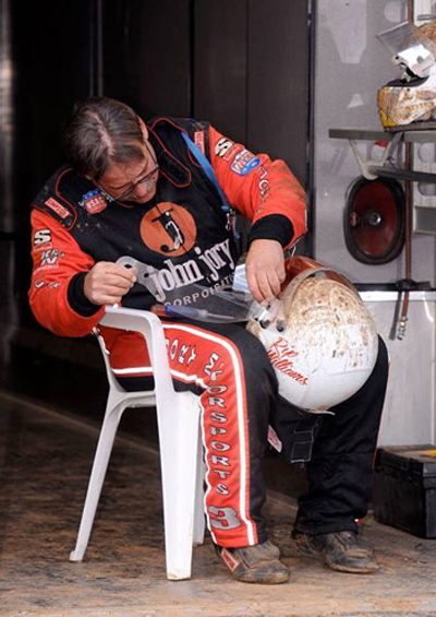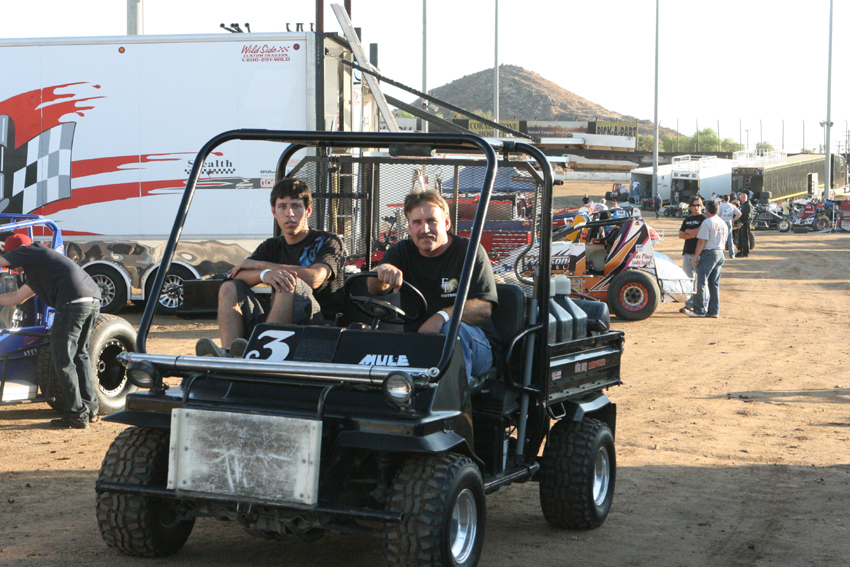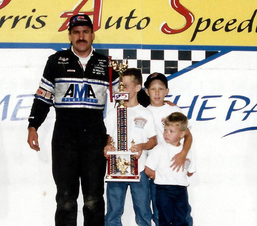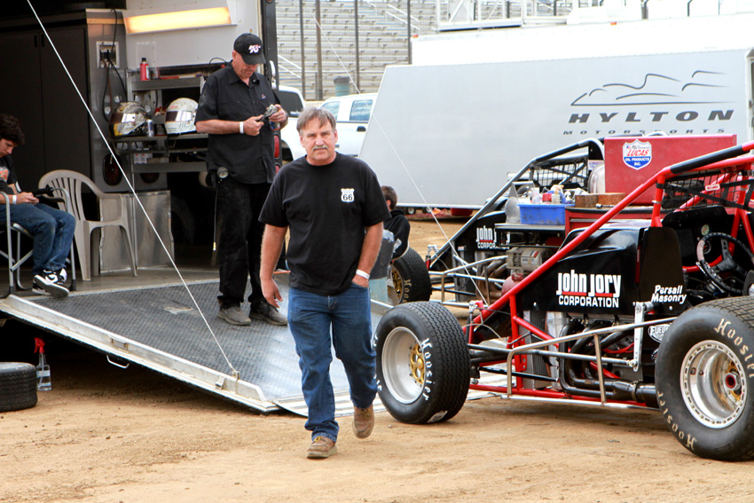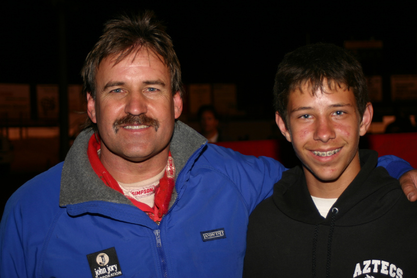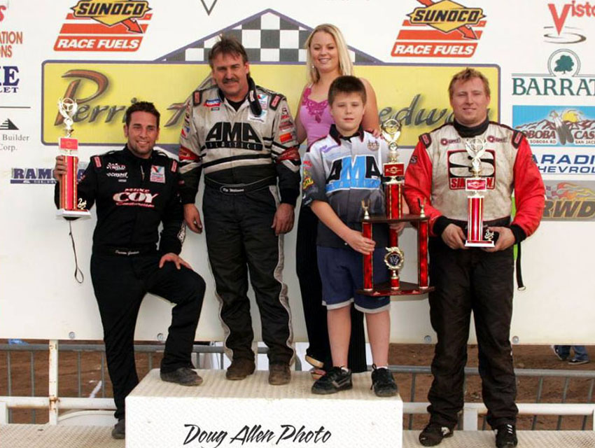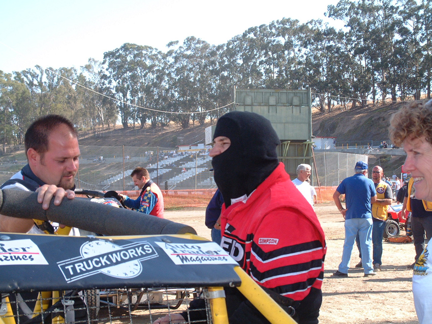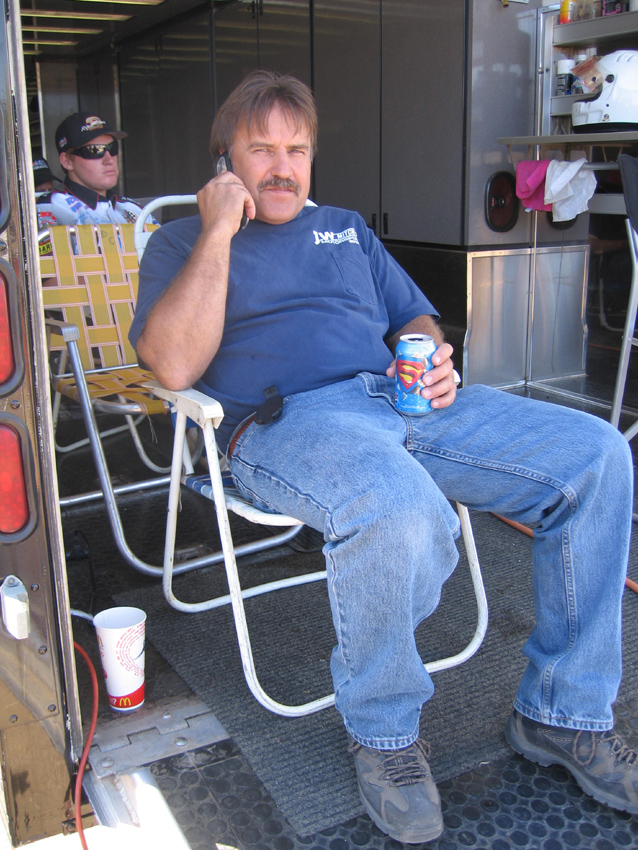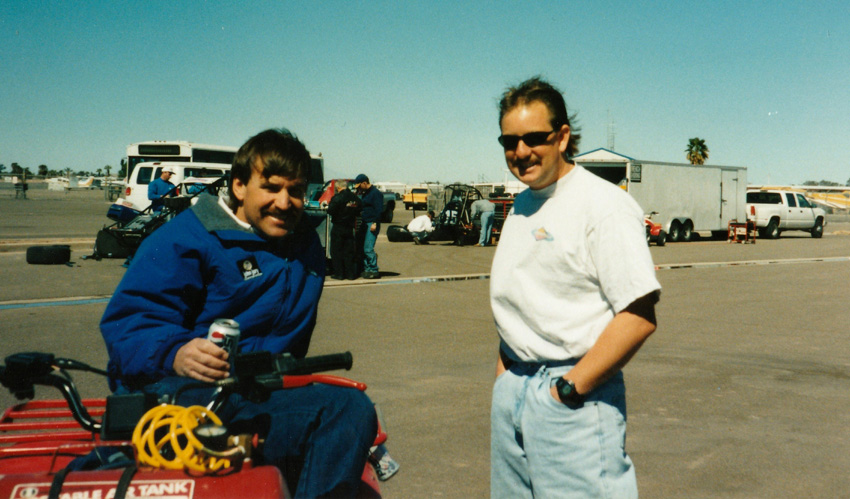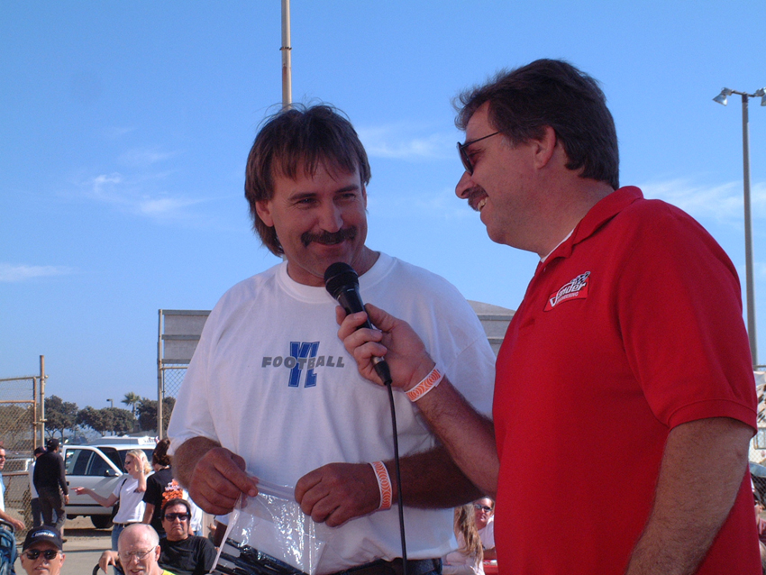 Rip after a win in the DSD car. Car owner Frank Lewis is behind him in the black jacket
