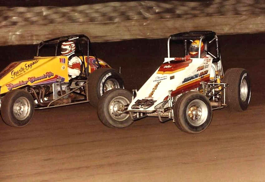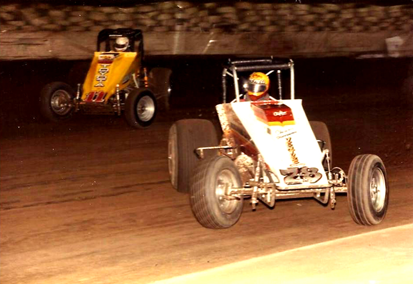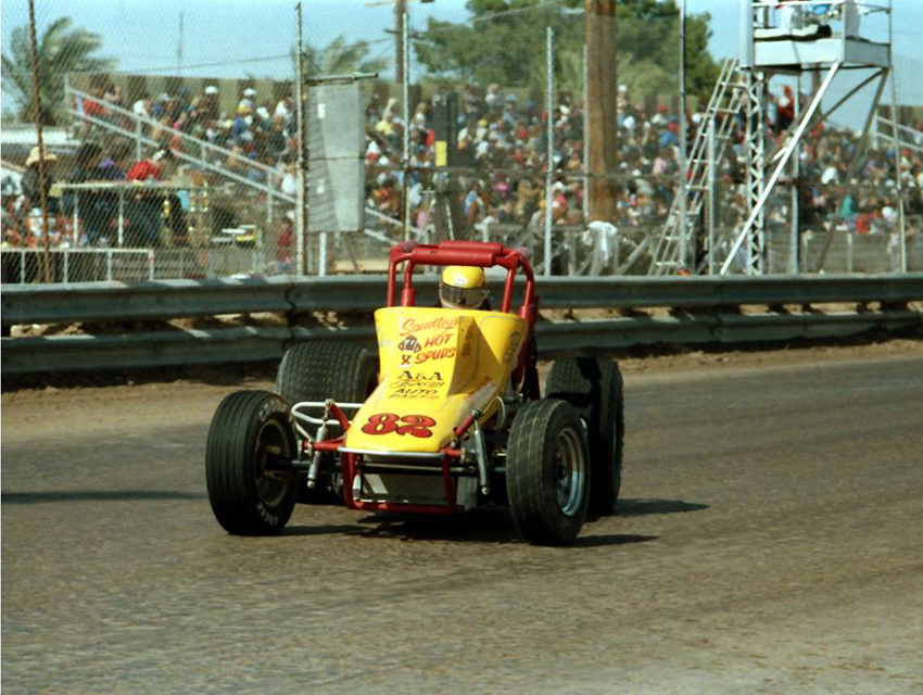 Roger chasing Billy Cruce with Ron Butler following at Orange Show in 1980