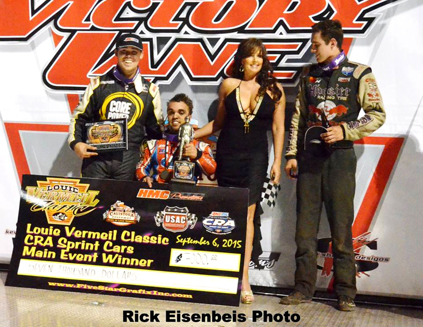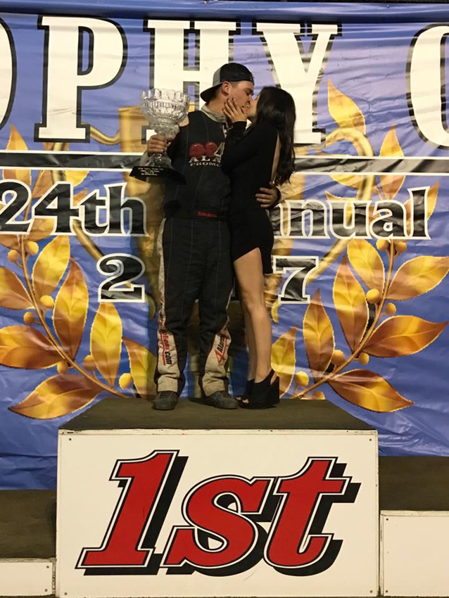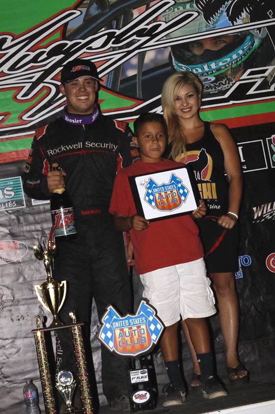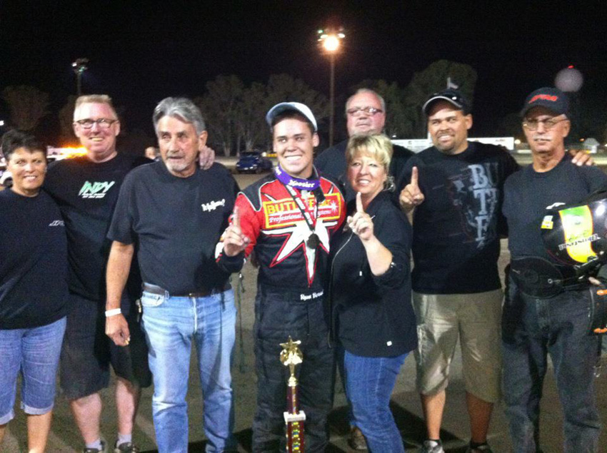 Ryan after his first spec sprint car win with his Mom and Tod Dameron