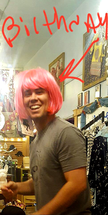 Ryan with a bottle and a lady at Santa Maria