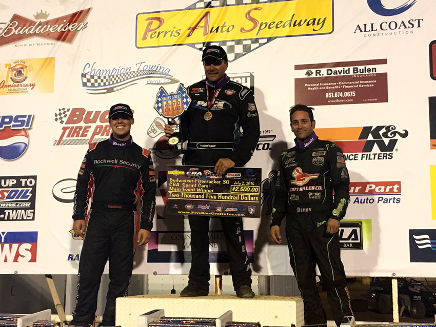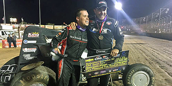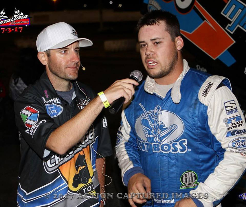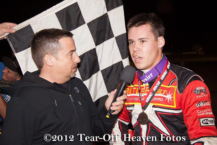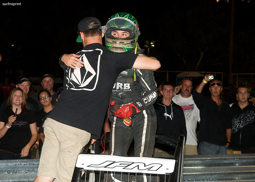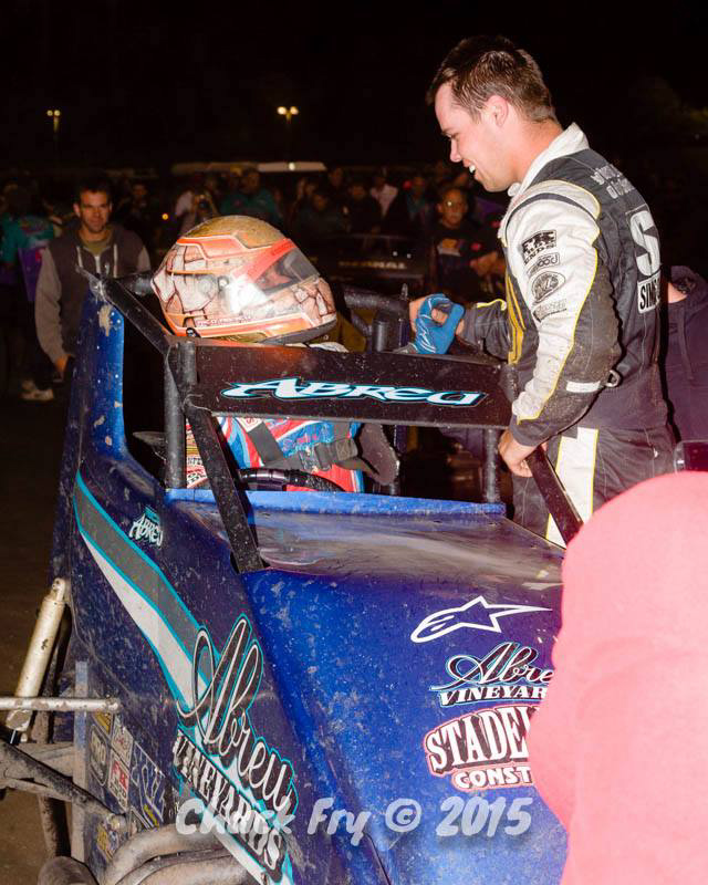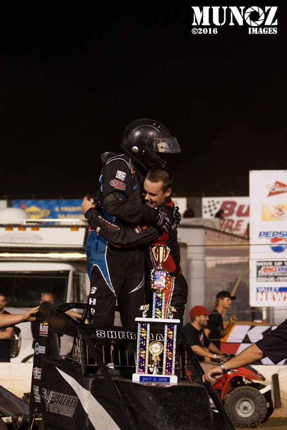 Ryan greets winner Danny Sheridan after they finished one-two in the 2016 July 2nd Perris race