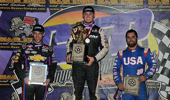 Ryan on the Trophy Cup podium with Willie Croft and Colby Copeland