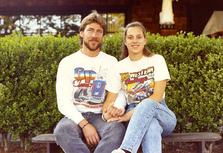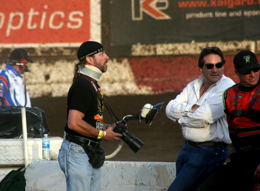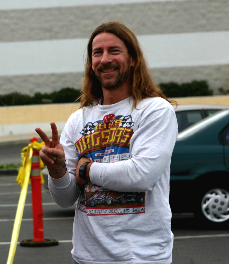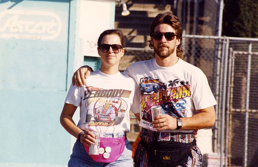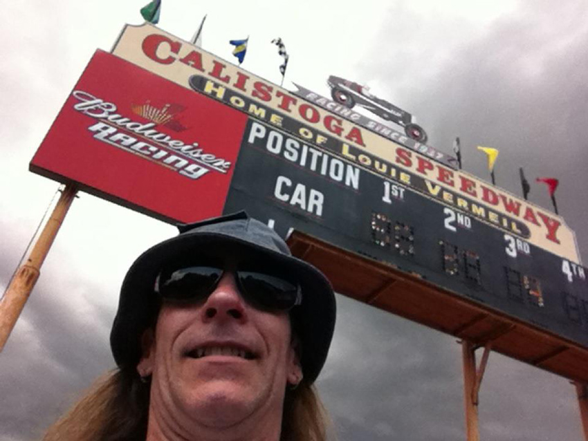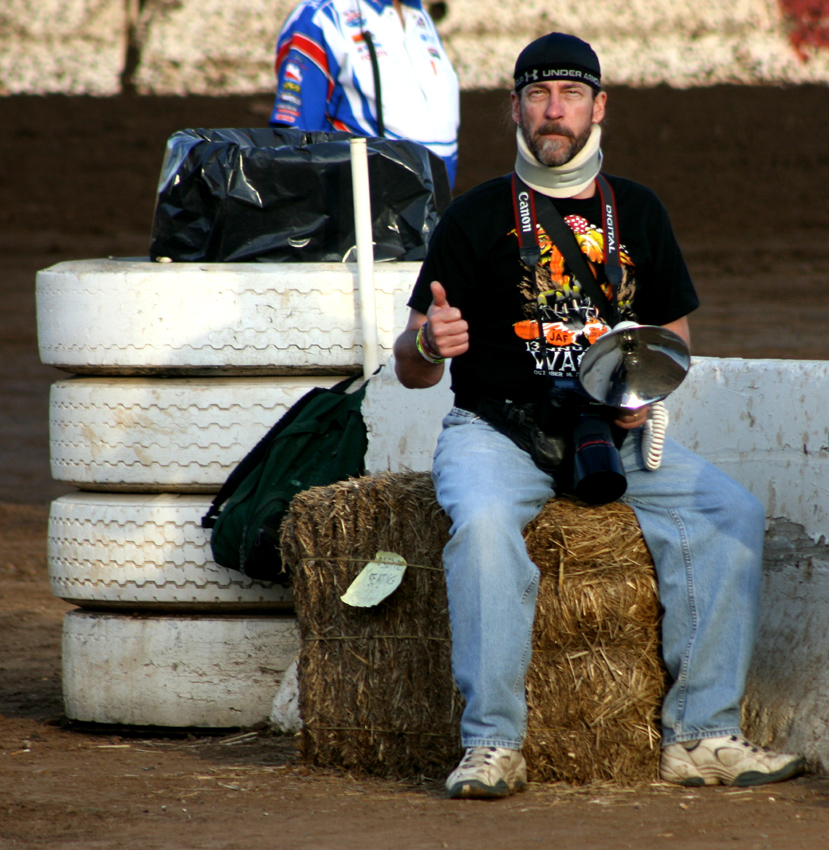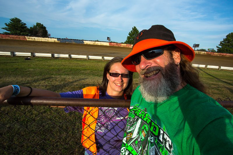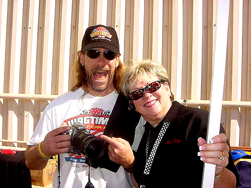 Steve at Arizona Raceway after he borrowed one of my hats for sun block STEVE AND KIM