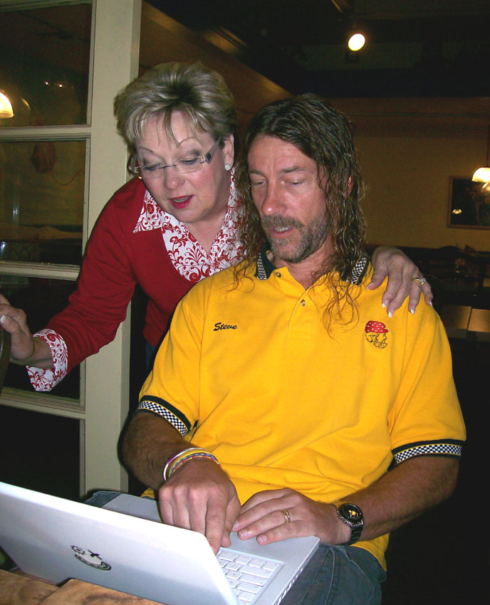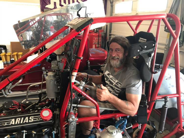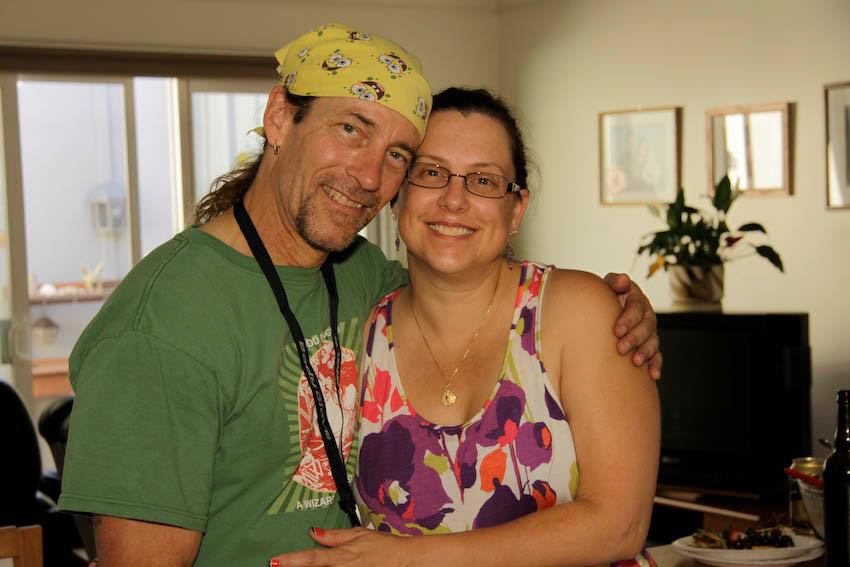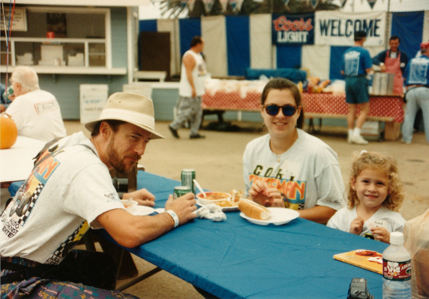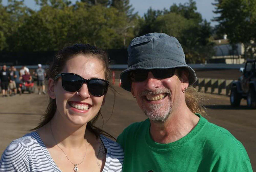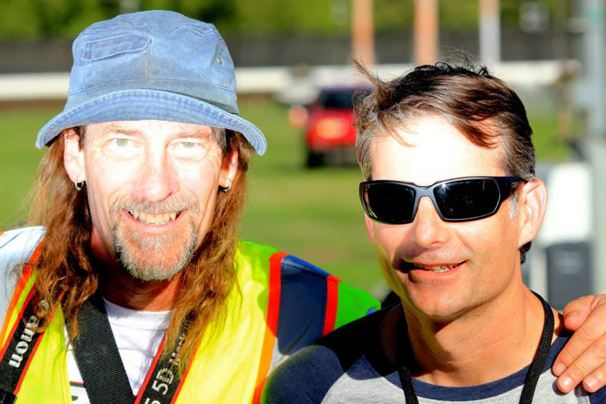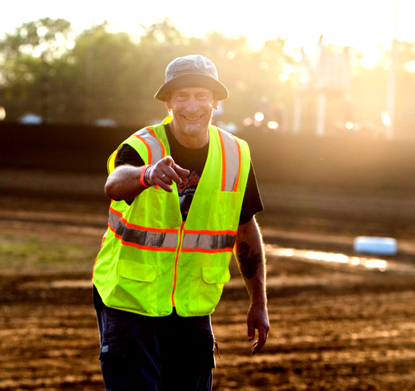 Steve at Arizona Raceway after he borrowed one of my hats for sun block STEVE AND KIM