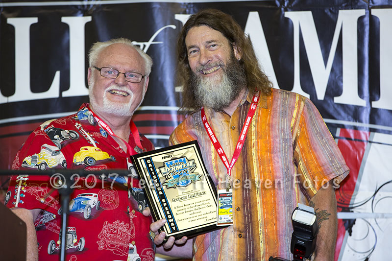 Steve presenting Ryan Bernal with the hard Charger 1170.50 and a handle of Crown Royal in 2018