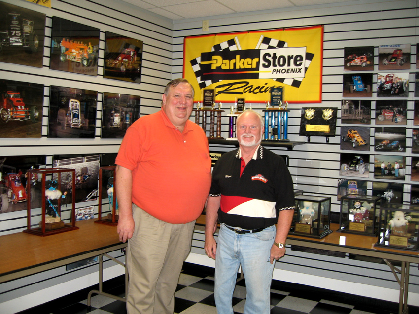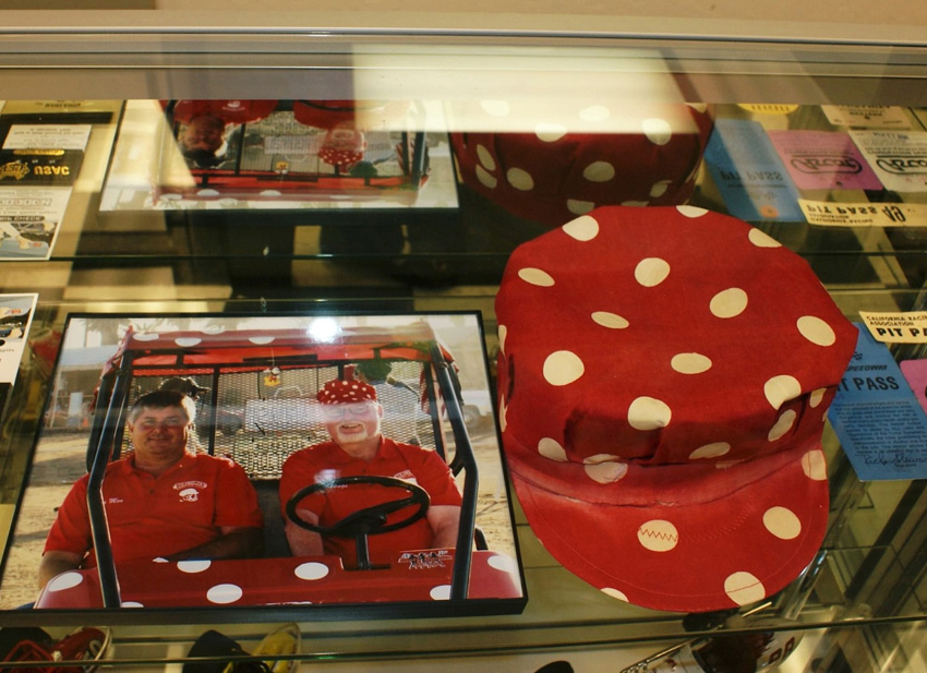 Steve was already a big sprint car sponsor and race fan when I met him. His Parker Stores had Donny Schatz running WOO as their guy. I got a chance to go to his office and see his photo room and have lunch with him in the early 90's. He wanted to get involved with the Wagsdash as a big sponsor, with one stipulation...It had to be at Manzanita. The 2nd Wagsdash was at Manzy and after Steve Ostling won the 30 lapper I went to the winners circle to talk with him over the PA, I asked all the Wagtimers in attendance to come down and celebrate with us. A dozen or so made their way down, so most in attendance were no surprise, locals. So unfortunately, I had to say no to Steve because I had to have the Wagtimers at Manzy and that wasn't going to happen. Steve thanked me and gaveo m me a nice check for the next Wagsdash and we didn't talk about it again. I saw him at races over the years and one day he called me and asked for one of my red and white polka dot hats? He then explained he was opening a sprint car racing museum in Phoenix. To say I was honored , yes, but I was more shocked. I was blown away with the honor and had nothing to say except Thank you. When I went to Manzy and the museum, I took him two hats, one brand new and never worn, and a slightly worn out one that I had already retired. As you can expect, he took the old one and placed it in the museum with a picture of me and I was thrilled.