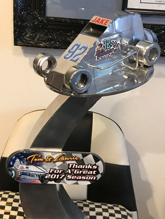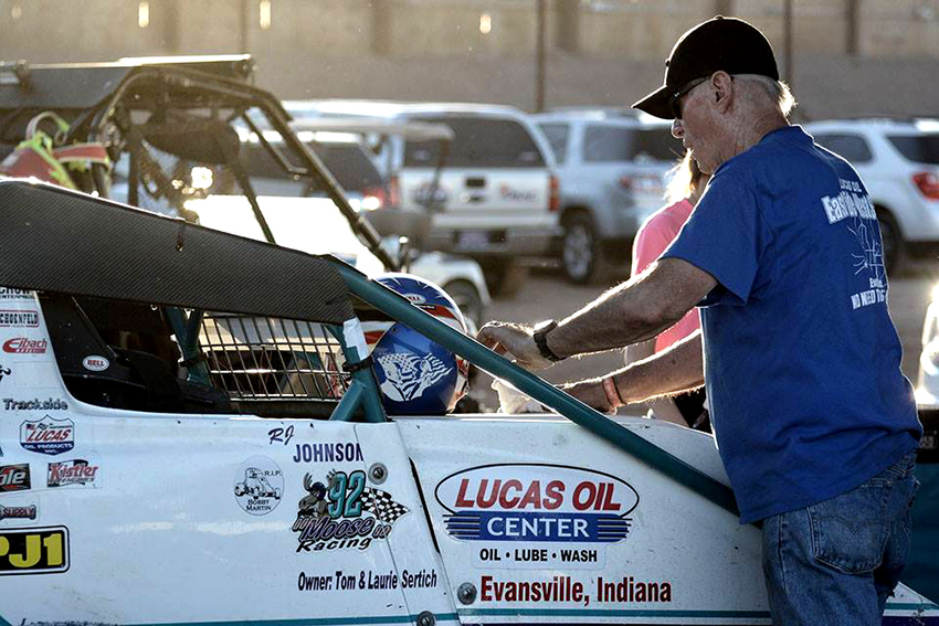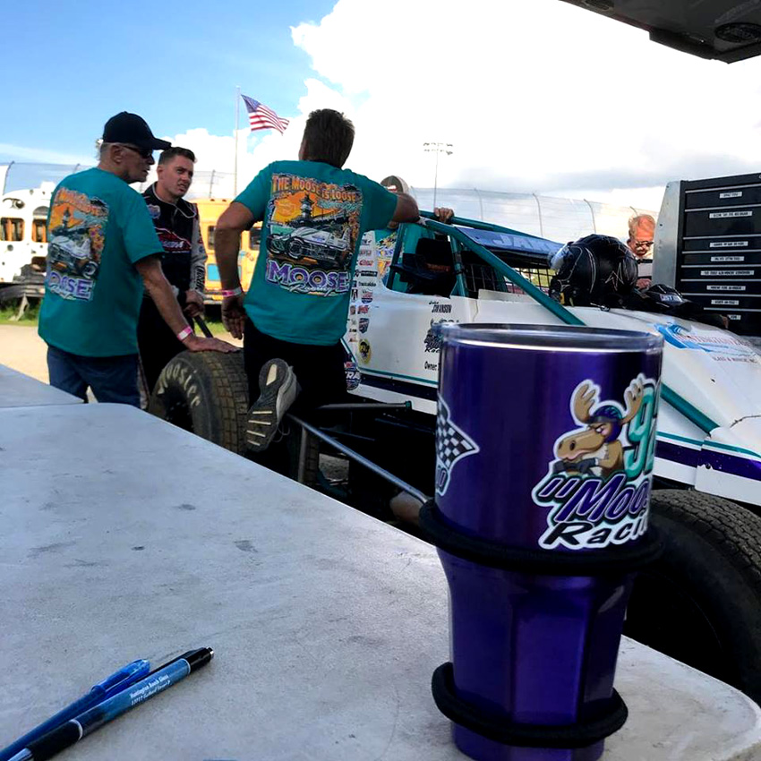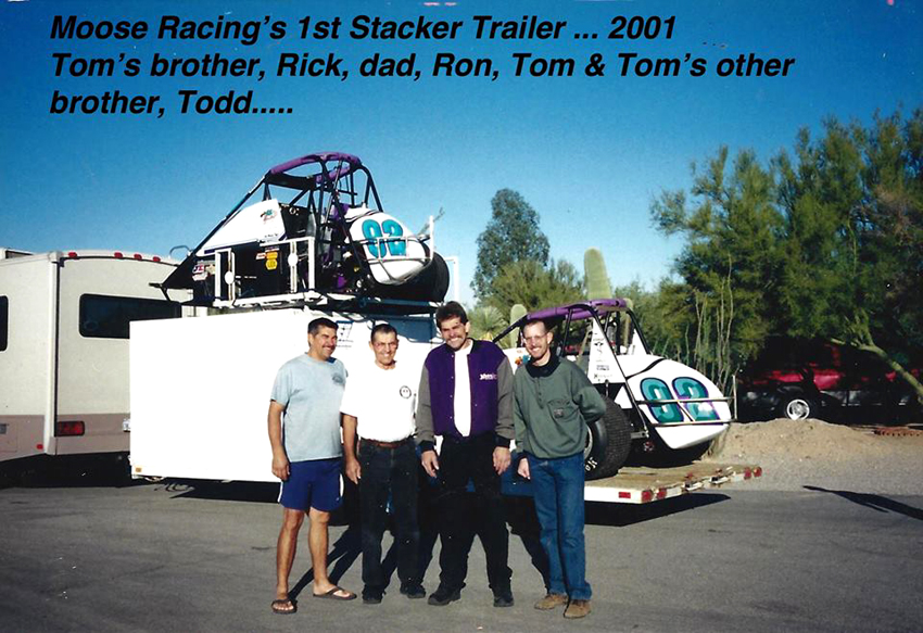 Tom began as a driver in my memory and after getting out of that what he wanted, he and Laurie became car owners. Mike Boat, Glenn Carson, Rusty McClure, Greg Bragg, David Cardey and now Jake Swanson are just a few of the shoes who drove the Moosemobile along the way.