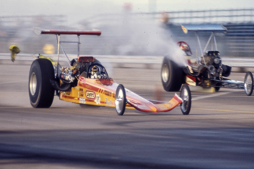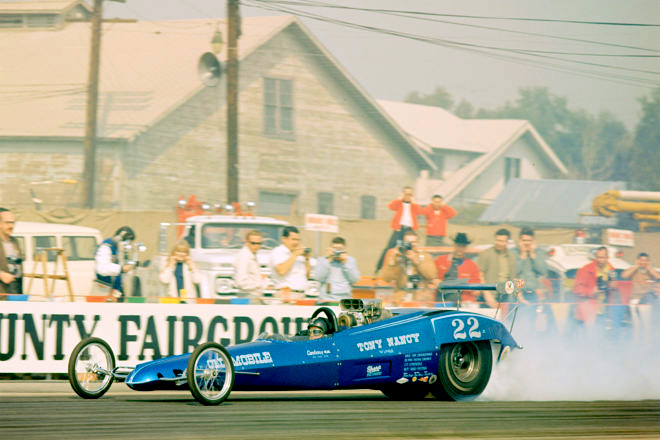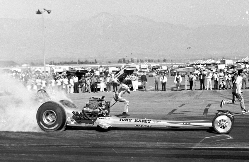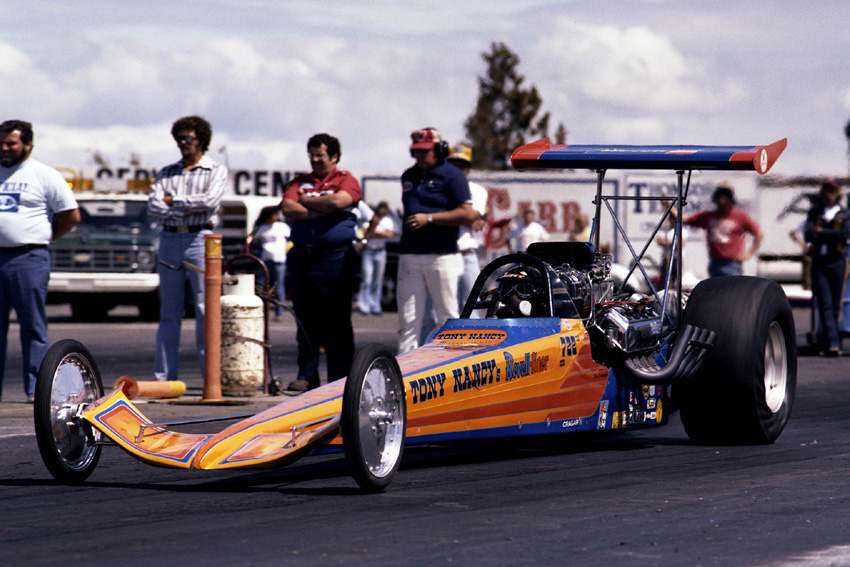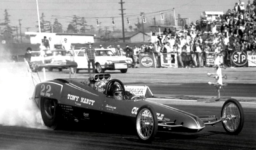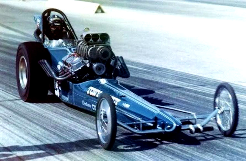The following February, Tony entered the 1970 Winternationals and was runner up to Larry Dixon. “Two months later,” according to Phil Burgess writing in National Dragster, “he defeated a strong 32-car field to win the prestigious Bakersfield U.S. Fuel and Gas Championships”—there were actually 105 Top Fuel dragsters entered. The year continued to go well with low ETs at Oklahoma City, Fremont and even Lions where he set a new west coast ET record at 6.49 at 232 mph. The following year, Tony held the NHRA national speed record at 236.22 mph.