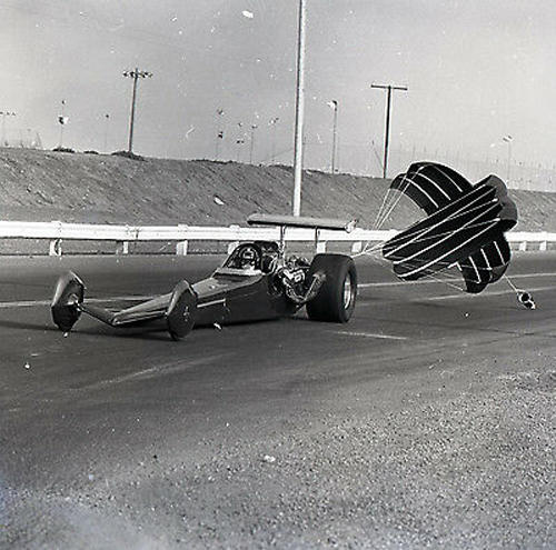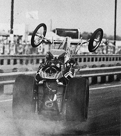 Wedge I, painted orange, first appeared at the 1964 Winternationals, to pass scrutineering, but only ran for the first time in March, and only ever ran in white livery. Handling was problematic; at Sandusky, Ohio, in July 1964, Wedge I flipped on its way through the timing lights, at a speed of over 200 mph (320 km/h). (This phenomenon, later common to rear-engine dragsters, would come to be known as "blowover".)