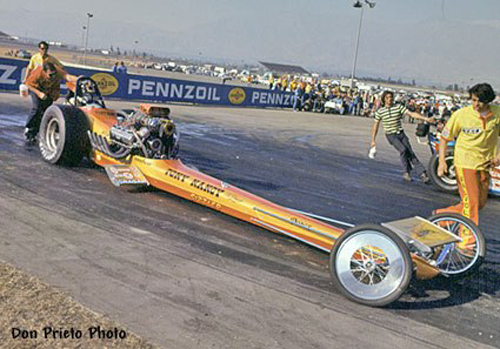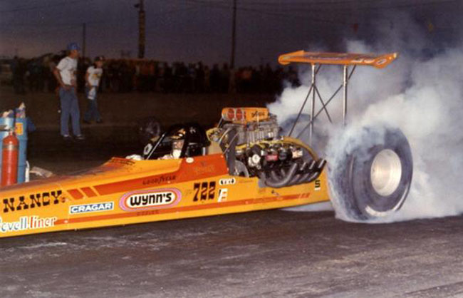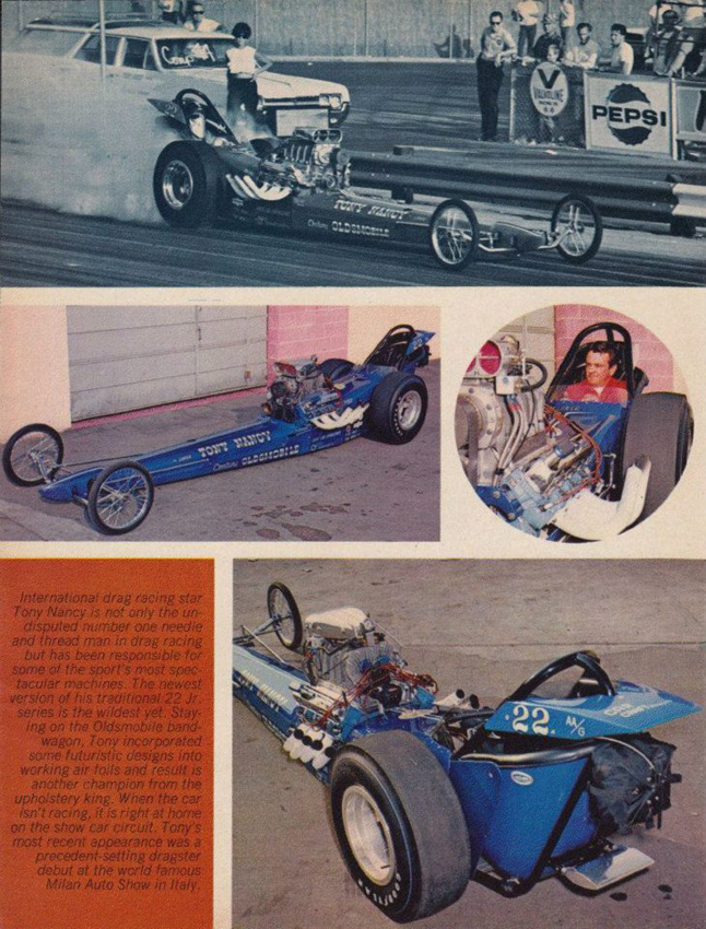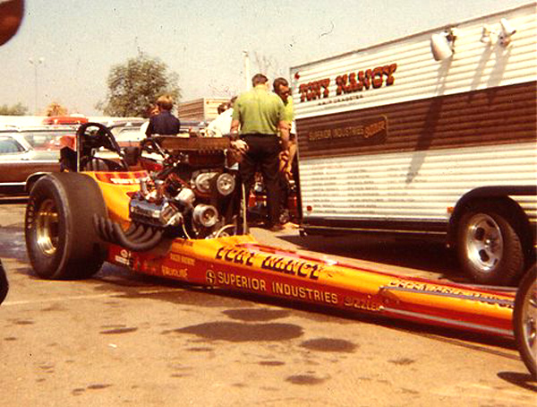 Nancy set at least one NHRA record or Drag News 1320 mark in every class in which he competed, which encompassed cars such as a V/Fuel Dragster in 1957 through Top Fuel, where he held the national speed record at 236.22 in 1971 with this car.