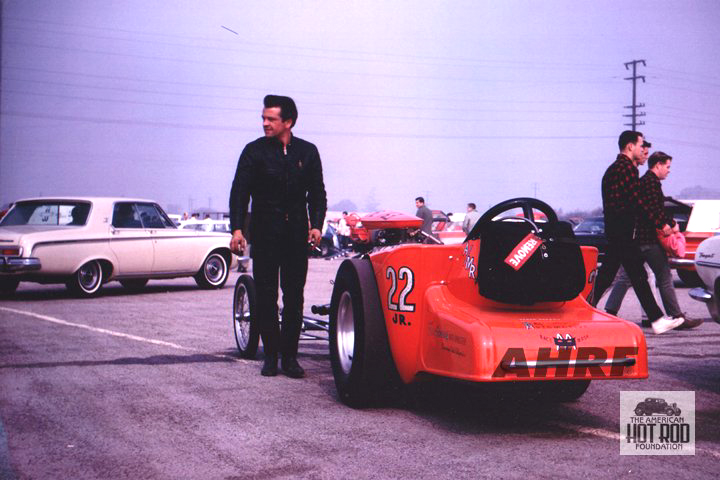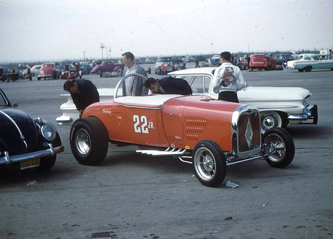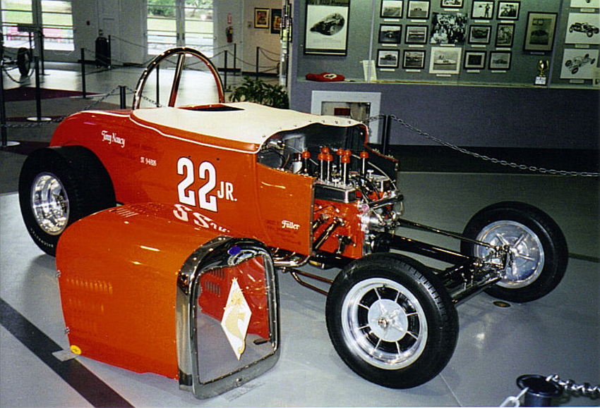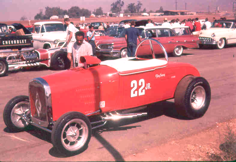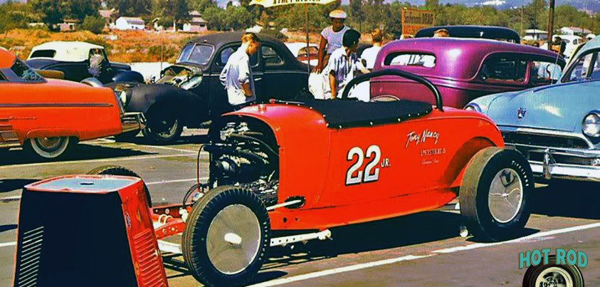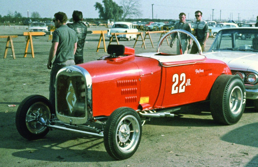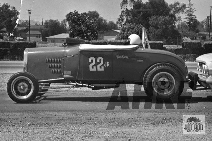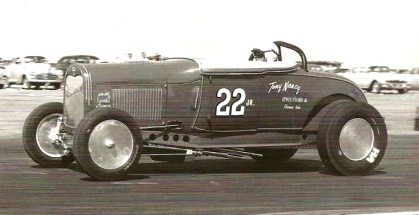 In an interview with David Steele for the AHRF, Tommy had this to say, “Tony Nancy wanted me to build him a similar drag racer to promote his new upholstery business. I had already built him a hot flathead for his street roadster at the time, so we were friendly, and I guess he trusted me to do things right. He saw how important the Willys was for promoting my shop, and he thought he'd do the same. He wanted to race a roadster, though, so that people could see his upholstery work at the racetrack. So, I made a deal with him, and we took the entire driveline out of my Willys. The engine, transmission and rear end, and put it all in a '29 roadster that he'd bought. That was his first drag racer... the original 22 Jr."