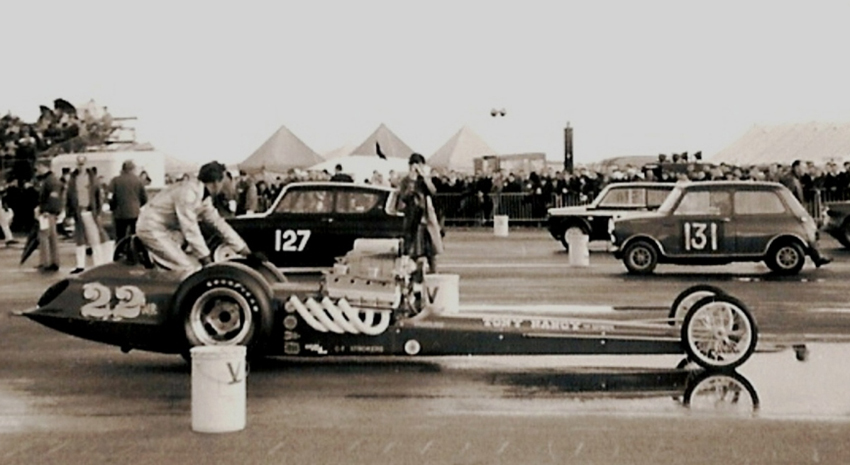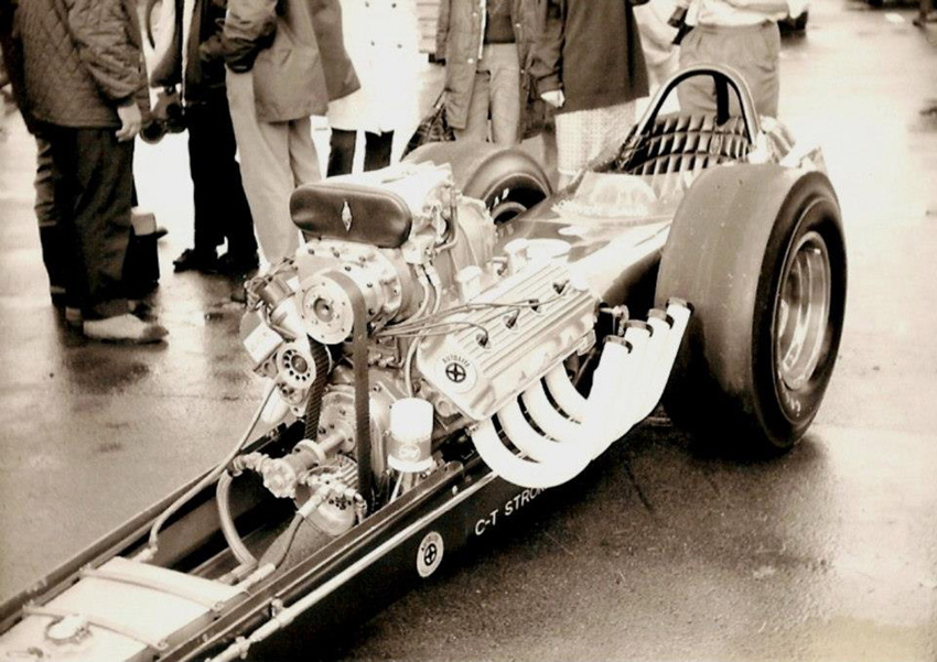 In August of that year the blown Hemi-powered Wedge II was on the cover of HOT ROD Magazine. Despite the carnage during the trip to England, Tony returned the following year with the rebuilt 22 Jr. and described the rained-out events thus, “ I stood there huddled in my quilted jacket watching as each car zipped, slid, skidded—engine balking and tires throwing up rooster tails. It was so wet that the drag parachutes used to help stop the dragsters would just flop out of the pack and slop along the ground like a wet sash.”