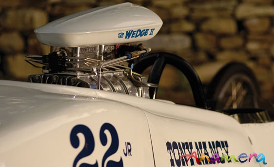 Wedge II was modified, with slots above the slicks to allow air trapped under the car to escape and rear suspension deleted, while the wheelbase was also extended. Nancy powered the car with a selection of blown engines: a Plymouth, then a Chrysler hemi, and finally an Olds.