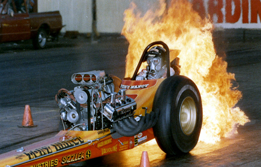 During the summer months of the sixties Tony toured constantly and the stories in Madigan’s book are magical and funny but bittersweet as Tony talks about the bad times as well as the good. Always, in the back of his mind was the thought that he should be like Elvis—taking care of business. There was one big chapter to write yet though—Top Fuel.