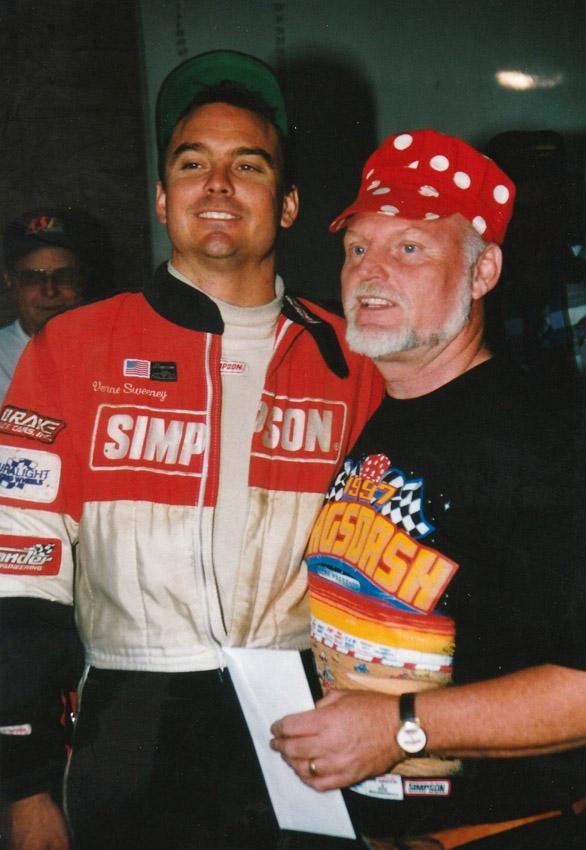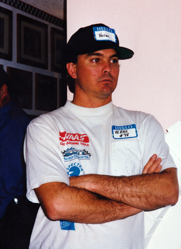 Verne won 1 CRA main event and it was at Manzy. His penchant to get a bunch of small sponsors added up to good help for his team. Always had a smile and didn't race for a few years . He and his son Andrew raced togeather for a while but now he comes out once in a while.