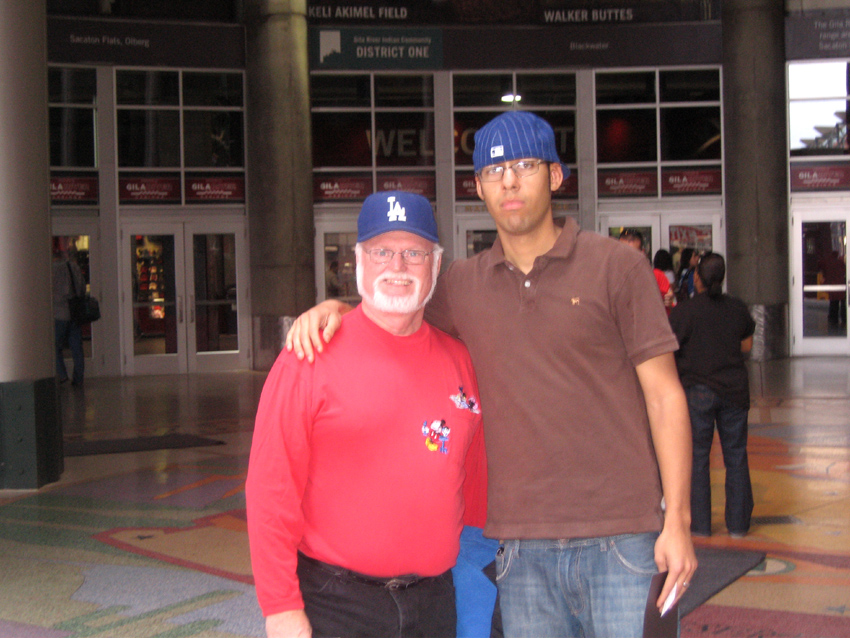 My grandson Tory and I in Phoenix for the last Manzy race. It rained and we went to a Dodger-Diamondback game. Dodgers won and I had to take him home on sunday and missed the actual last race there.