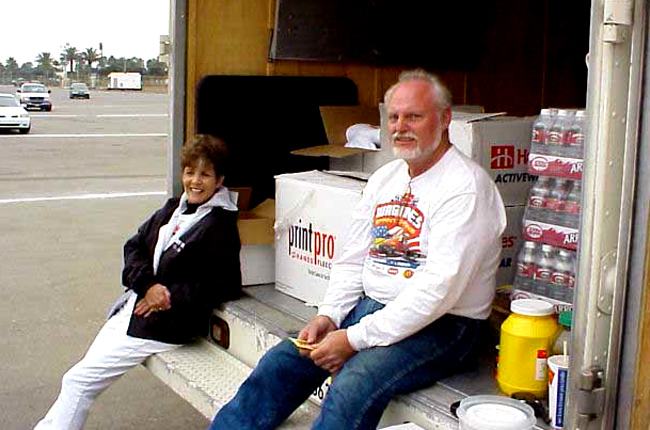 Sherri Spencer relaxing in the Wags truck full of Wagsdash stuff as we cook the chili