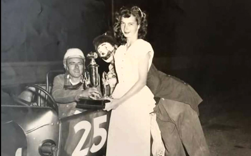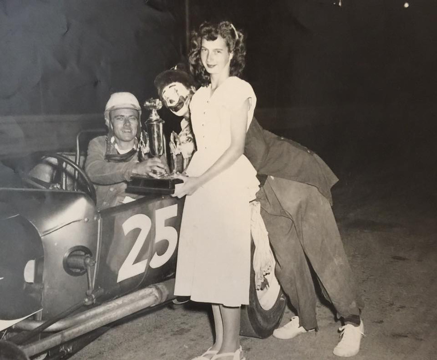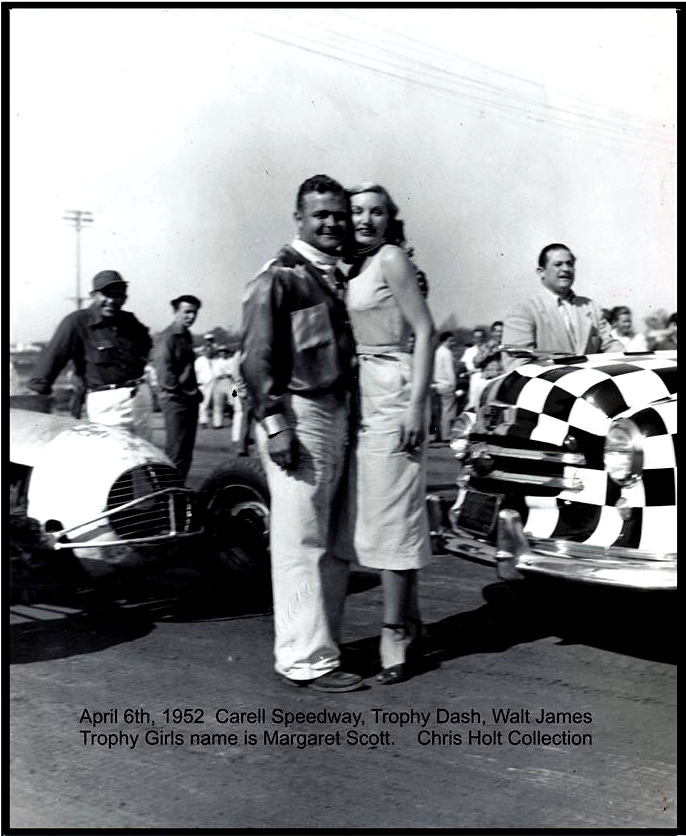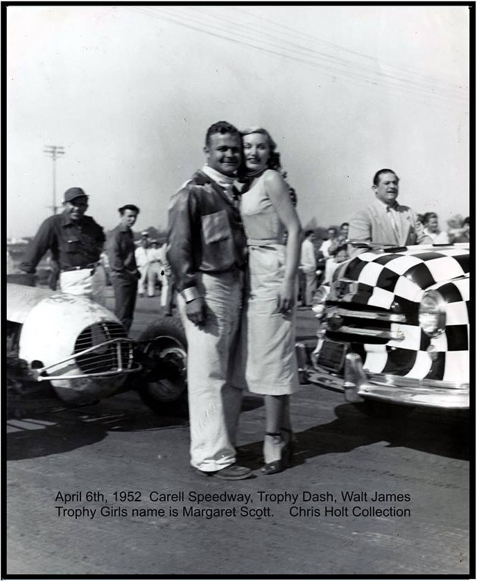 Walt 1952 at Carroll Speedway with the trophy girl