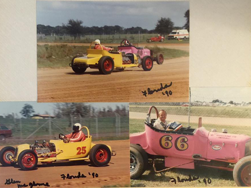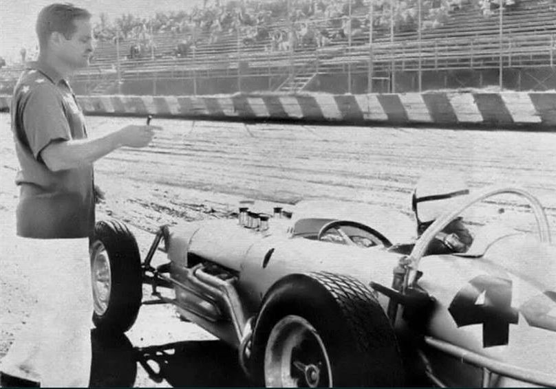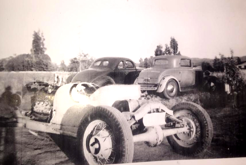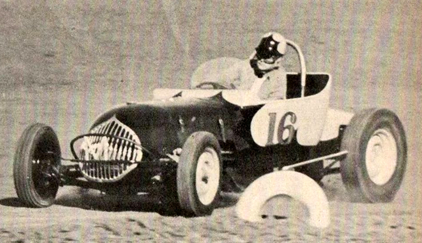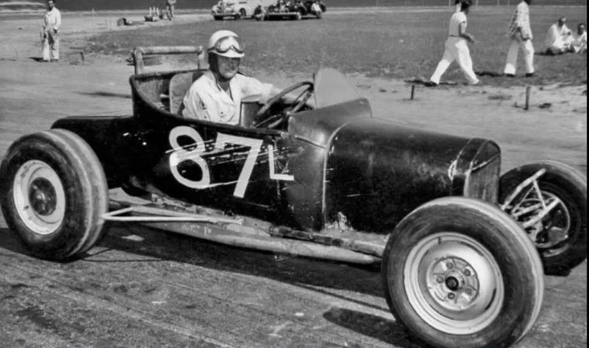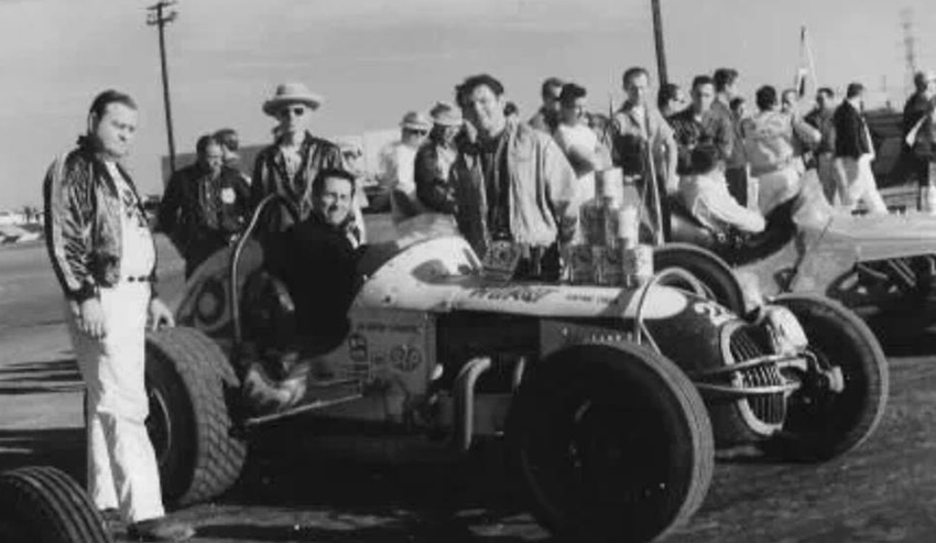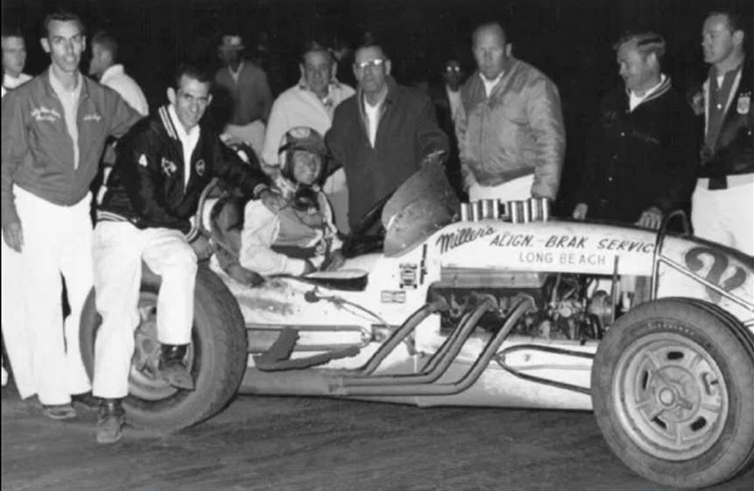 Walt had driven all types of race cars starting with the dry lakes, roadsters, jalopies, early and late model stock cars, a few midgets - most anything with four wheels. Racing interests could have well started in the mid-thirties when he and his brother Joe challenged the other kids on the gravel back roads of Saucier, Mississippi near Gulfport . He rode to California at 16 with an Uncle, following the lean depression years, for a job paying 25 cents an hour. There he lived with his Uncle, Aunt and cousins who had a gas station in Van Nuys where the Red Car made its turn about. Everyone wanted to get gas where the blonde curly-haired kid had such a unique southern accent. He met up with guys racing 'bob-tail' cars from Jeffreys Bam which sparked his interest, he also discovered and started running street drags in typical teen style.