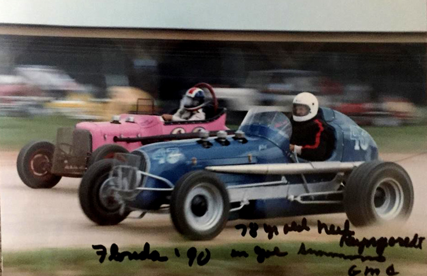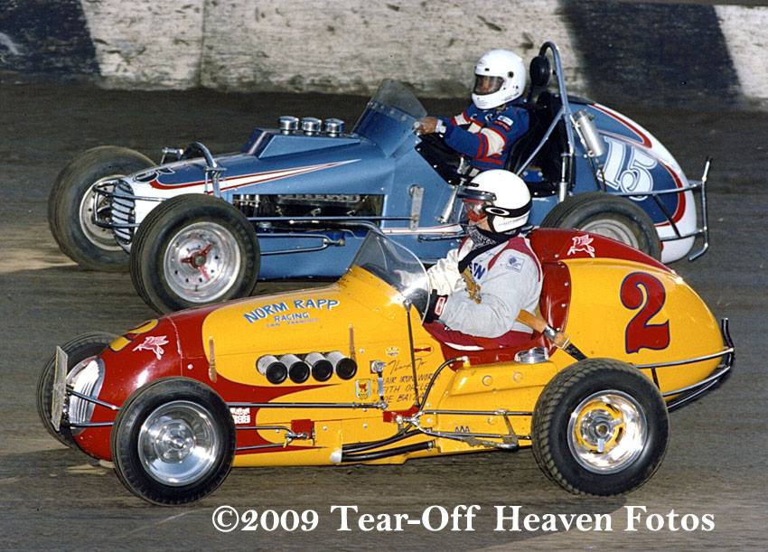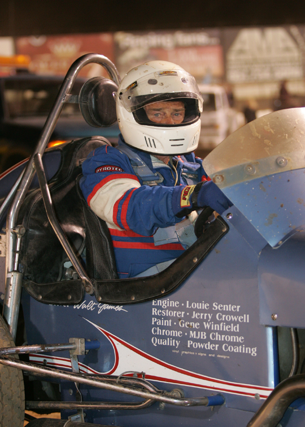 Indian Dunes was closed sometime in the late 1980s to make way for the new town of 70,000 to be known as Newhall Ranch - it never happened. In 1982 Walt and several of his racing buddies reactivated the Western Racing Assn which had been a big sprint car club of the 1930s, 40s and folded in the mid 50s. Walt was the first president, a post he held for four happy years. Then he decided he wanted his own sprint car and be able to travel since - with the closing of Indian Dunes - he was retired by Newhall Land and Farming and by the Air Force after 30 years. He joined every vintage club from coast to coast and British Columbia and truly enjoyed life. He was very proud to have been inducted into the National Sprint Car Hall of Fame in 1993. Walt was a real racer and liked nothing more than to swap stories with other old-timers - each one bigger and better! He eagerly looked forward to talking to folks after the events - heck, Walt just looked forward to talking!! And racing was always FUN. Way too much racing history was left undocumented with his passing - and today's drivers, while very talented and fast, have missed out on the sheer strength and raw courage it took to man-handle a machine through the dusty turns with no power steering.