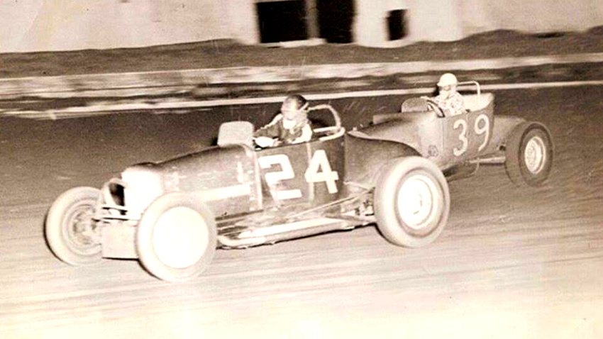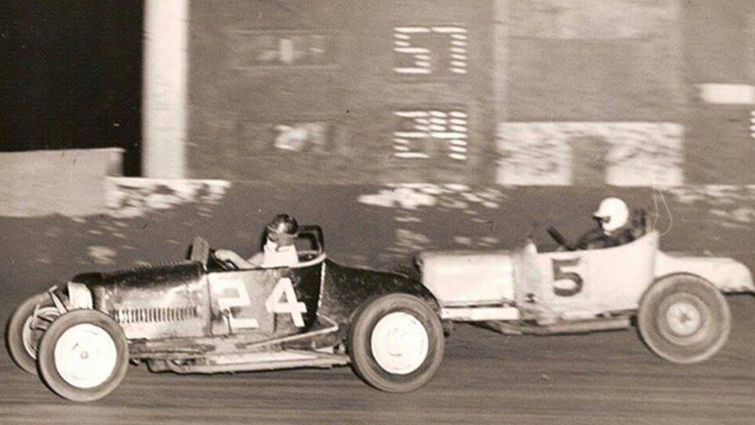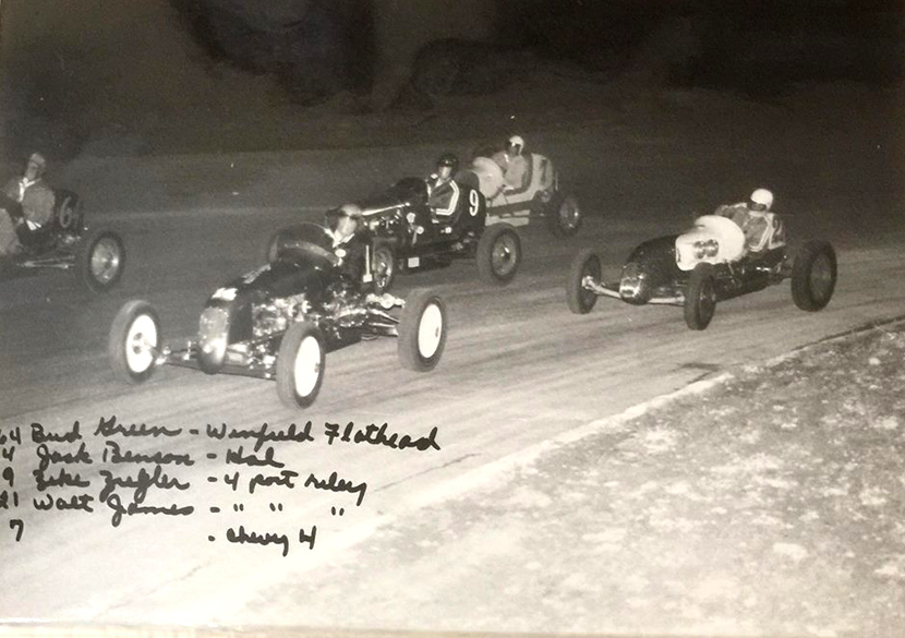 The first Morales Bros. Car in 1948 with Johnny Mantz driving and Walt James in the Silent Six at Carrell Speedway