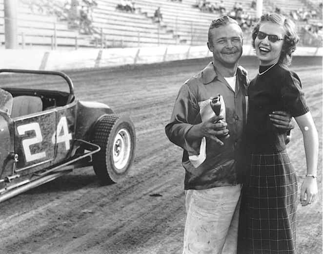 Walt with trophy girl in 1952 at Carell Speedway