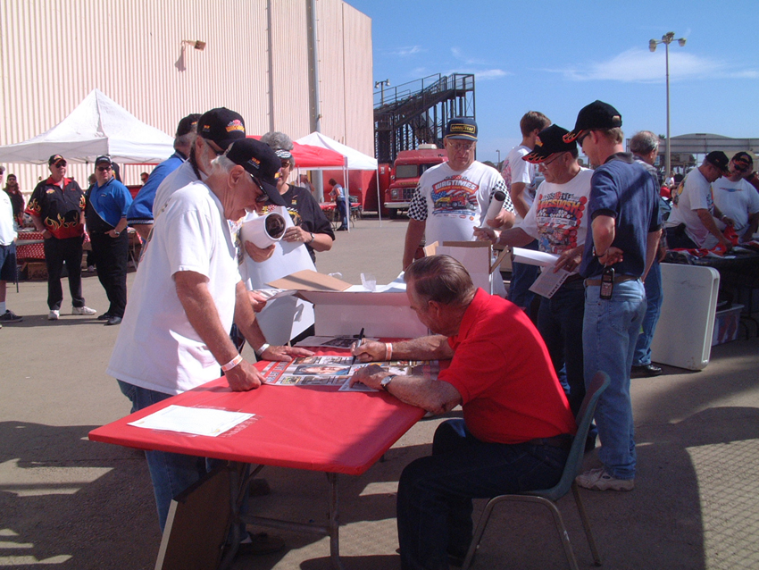 Walt on the table with other oldtimers signing