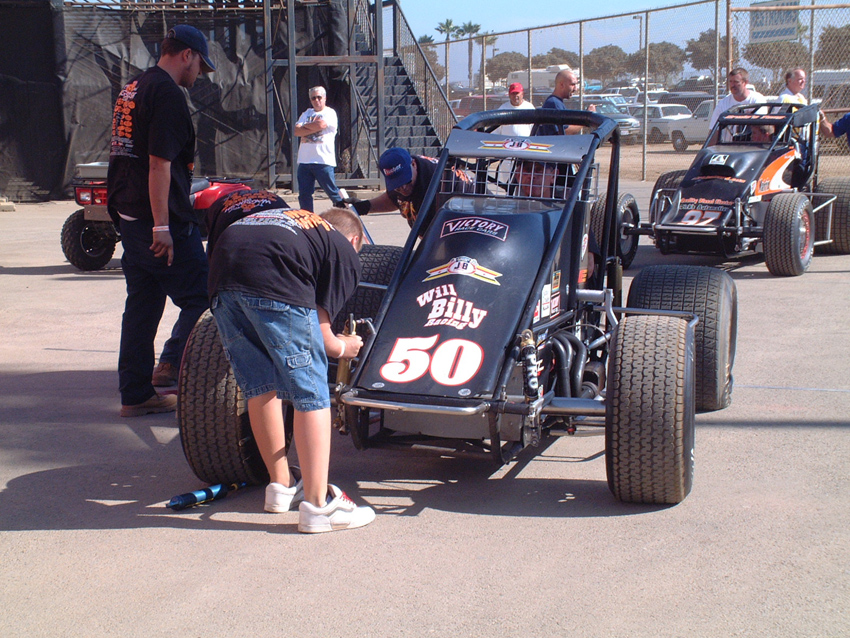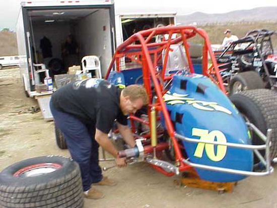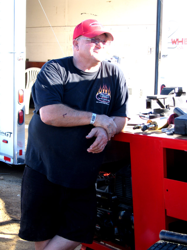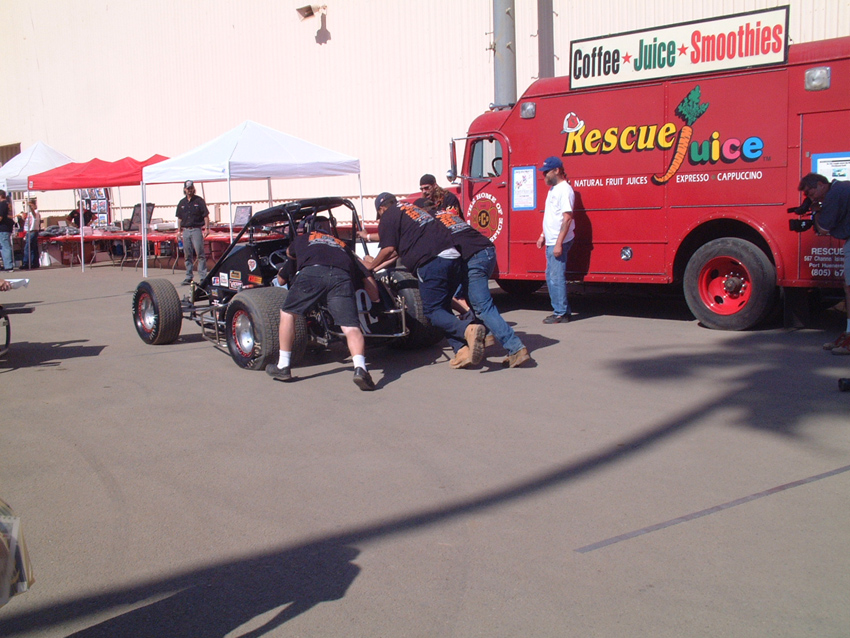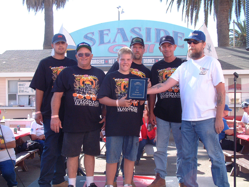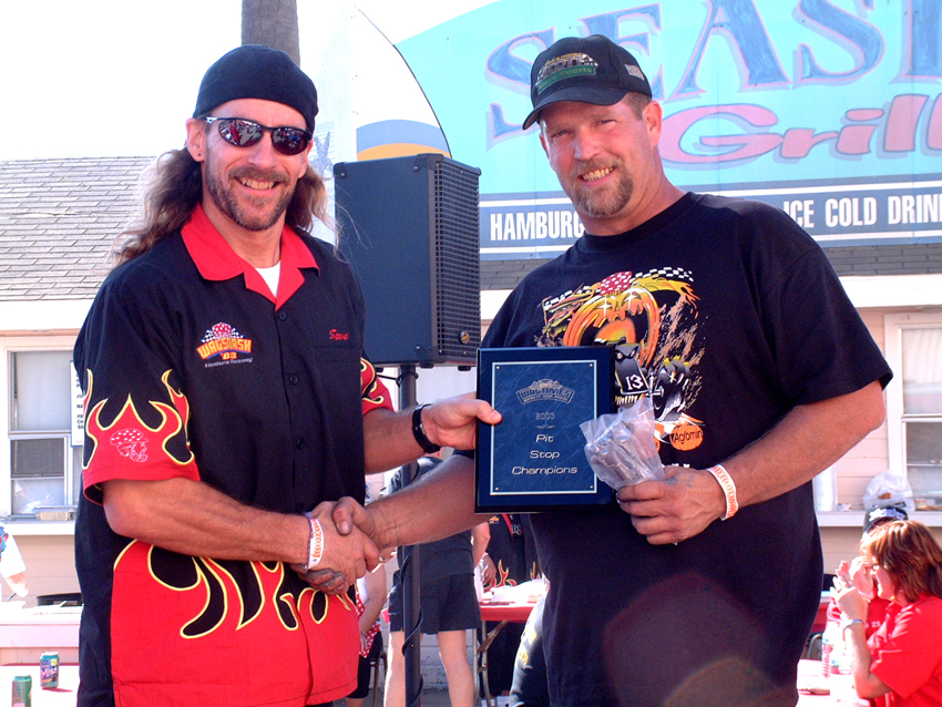 Will and the crew getting the Wagsdash tire change award from Biker Bruce