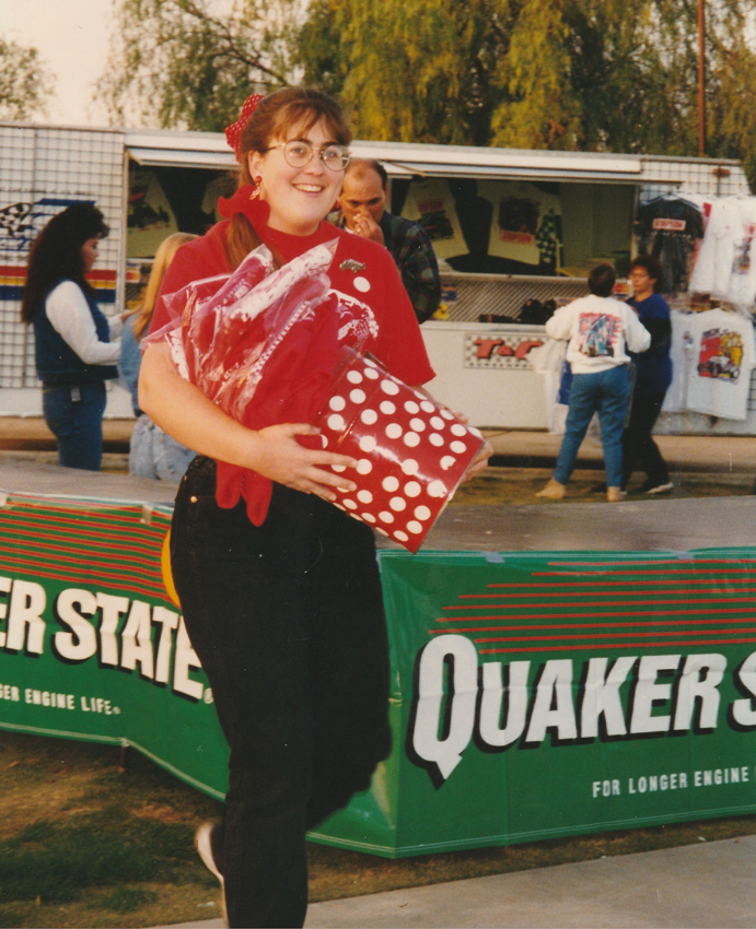 Tina works in the Veterinarian arena. She was a pushtruck driver at Ascot and still has the truck. She collects model horses and works on that year round. She wanted to race, but never had time even though I think she has a Dwarf car hidden away somewhere.