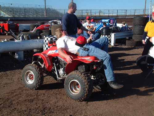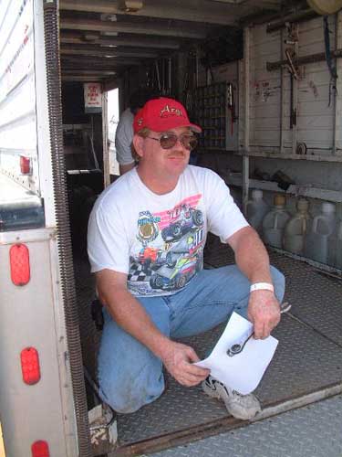 George poses by his racer in the motel pits. This is the week that he created the "fireball" photo!