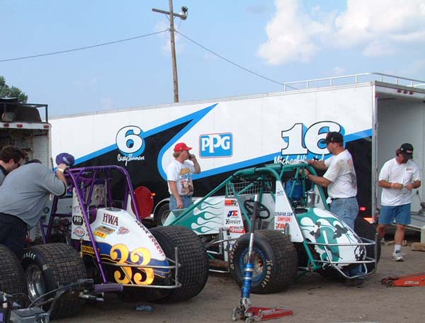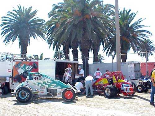 George's car and trailer share Ventura pits with Venard Racing team.