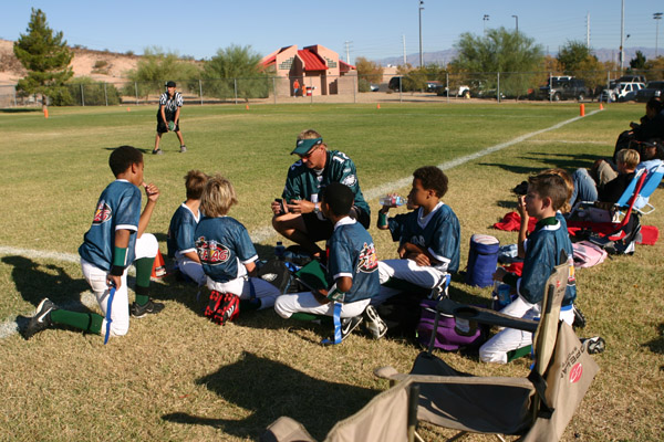 Coach has Hunter and Grayson over for a few words of wisdom.