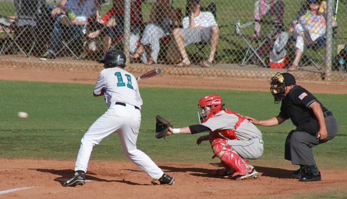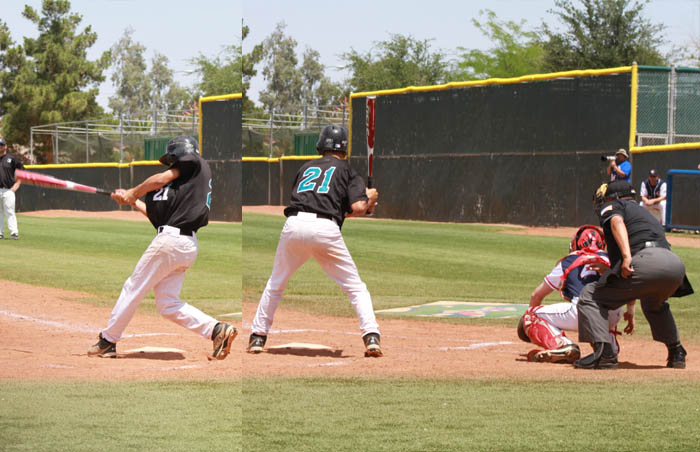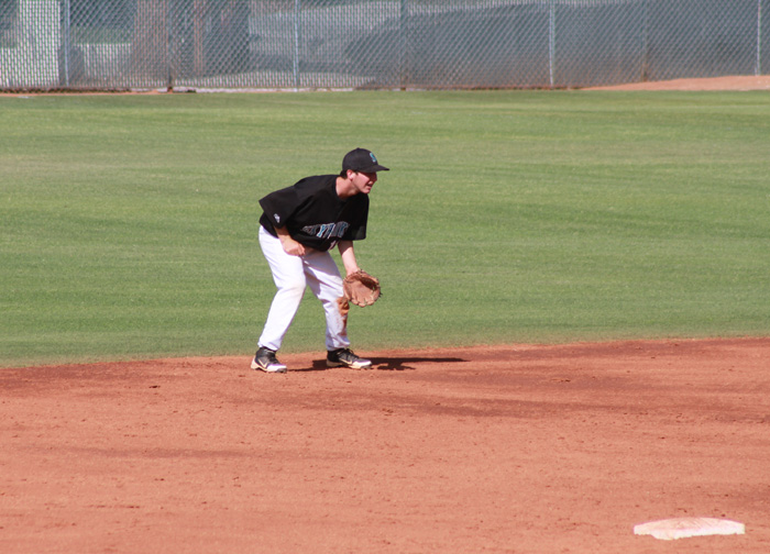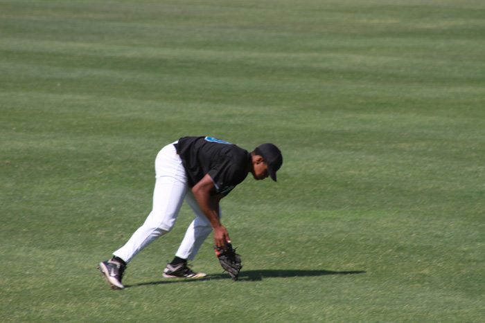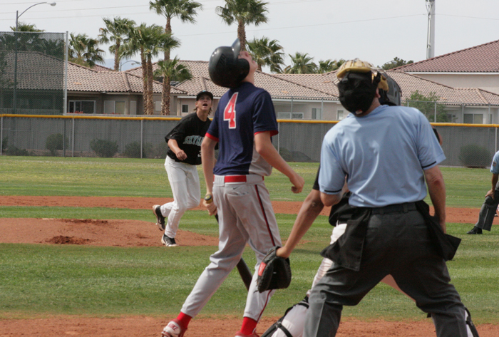 Mike had a couple of good swings leading off the day, but ended up on the ground after he got beaned in the batting helmet. It sounded worse than it looked.