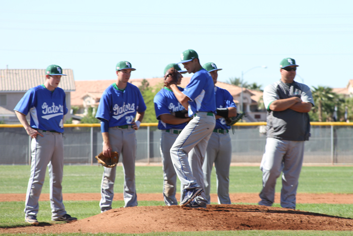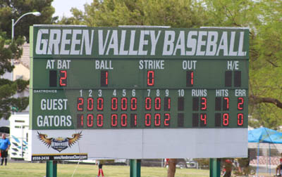 I don't remember when Silverado 10 ruled Green Valley. Thevisitors don't look happy as they warm up another pitcher!!!