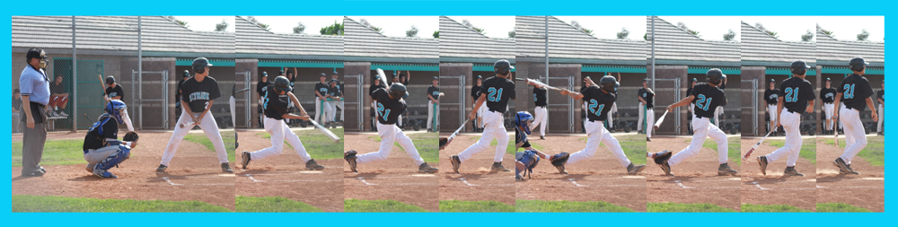 Trevor looking mean at bat. He hit a mean line drive for a double and scored on a hit.