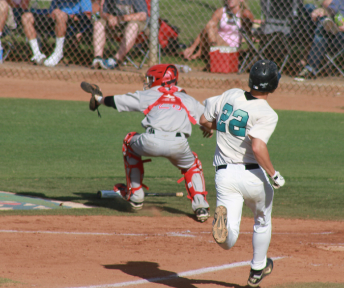 Cameron was on his game today, hitting the ball and scoring from 1st base on a double.