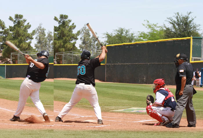 Bryan "the Bambino" takes a big swing. He was passed to first twice today and unfortunately it worked for the other team.
