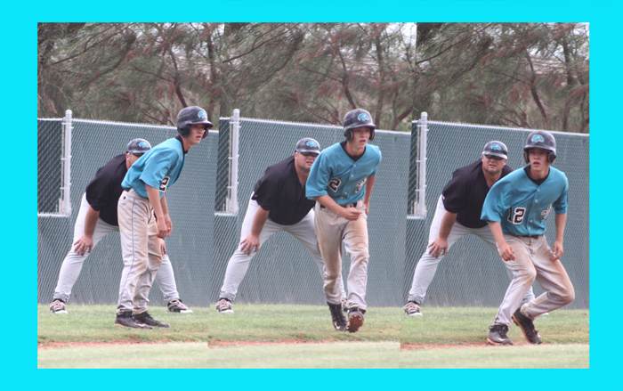 Hunter looking to score from third. He didn't, but not from lack of trying.