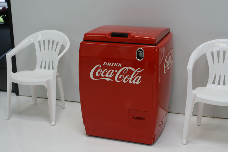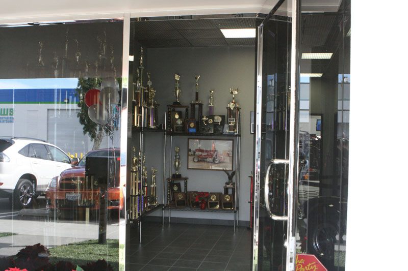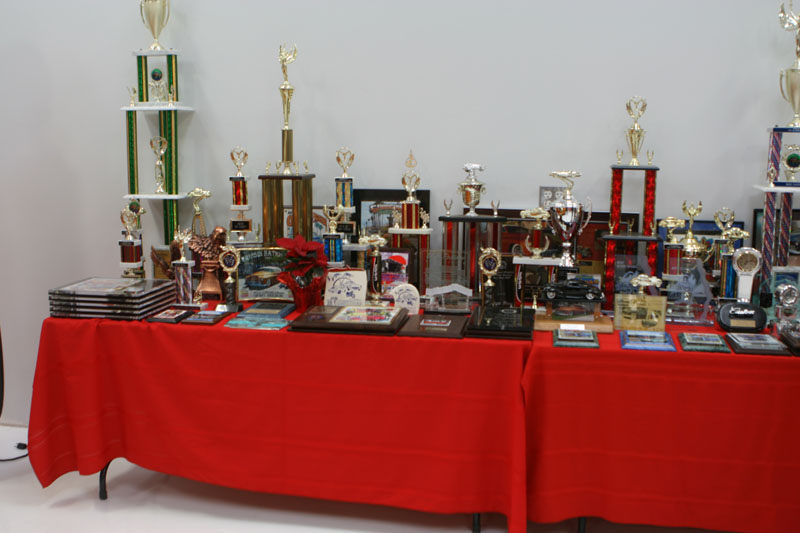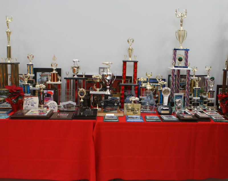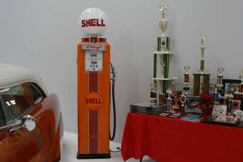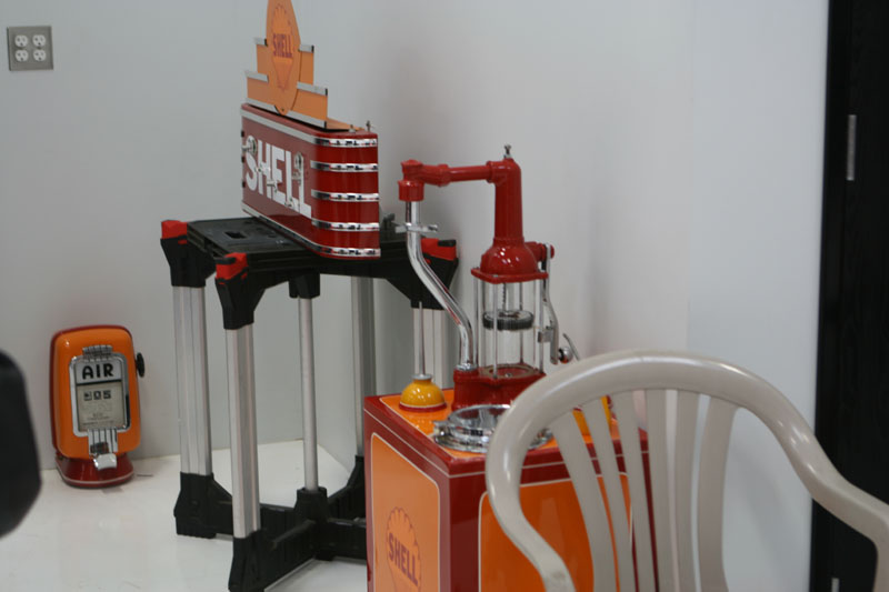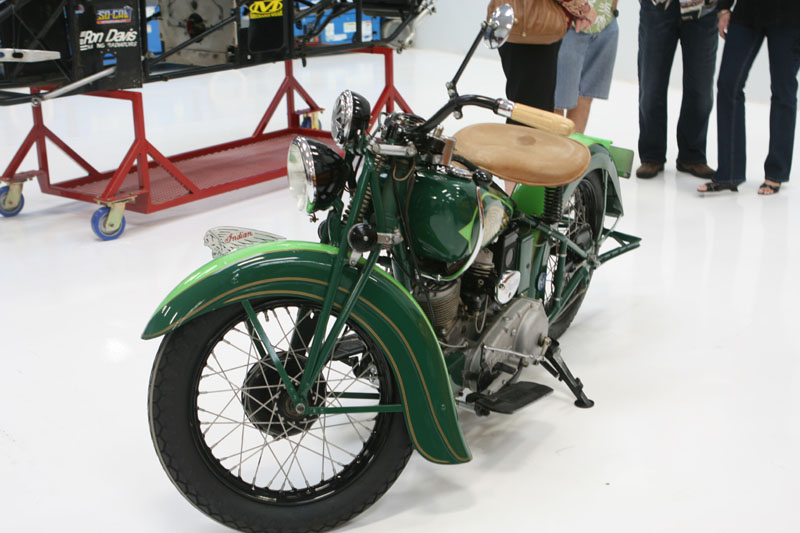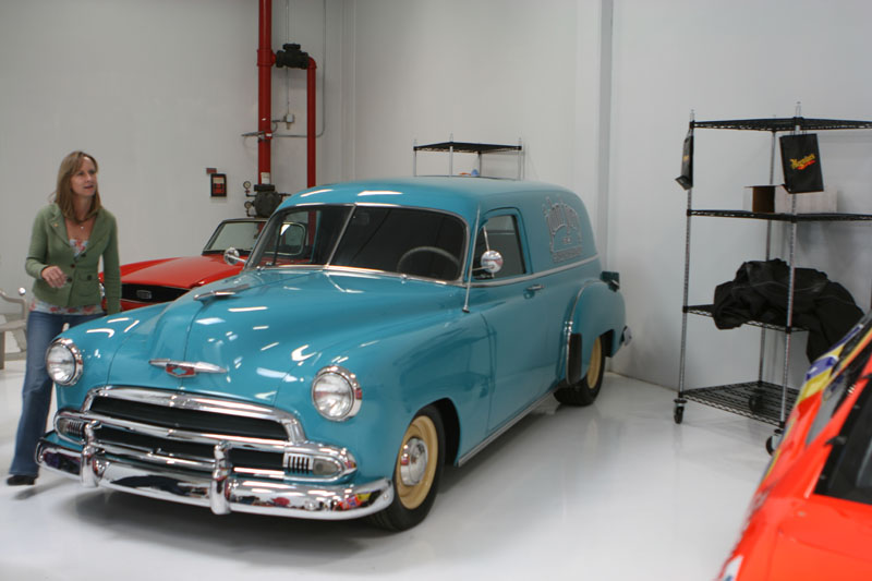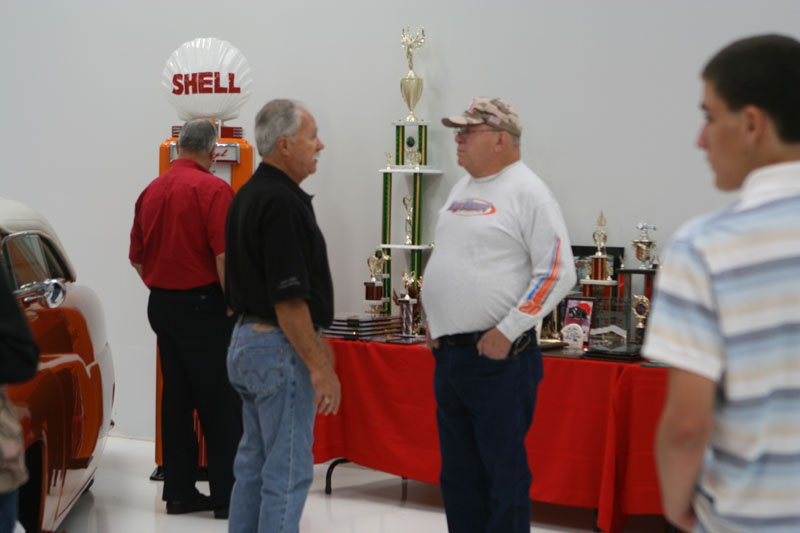 The "other" shop was really a showroom as numerous cars were on display. An old panel truck sharply painted and lettered, a stock car driven in NASCAR, a knockout custom Mercury, an old Indian motorcycle, a couple of Model A's and a red 57 chevy I would be proud to own. The pics below will give you a better view, but there were some hot items on display in this room that had a small sign above saying “big boys toys”. Another trophy area next to the connecting door had more hardware on display. I didn't see a cot, but I could imagine some all nighters in the race shop during the season when things needed adjustments.