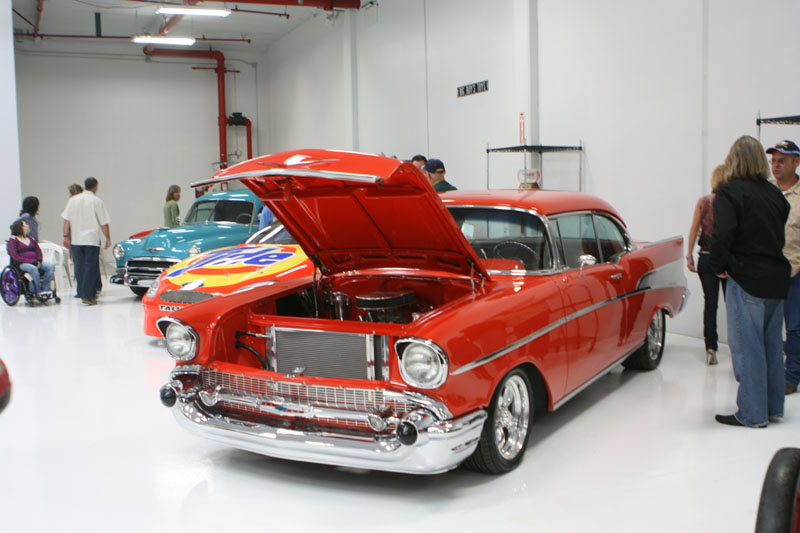 Next to the panel truck was a stock car and then a very cherry 57 Chevy.