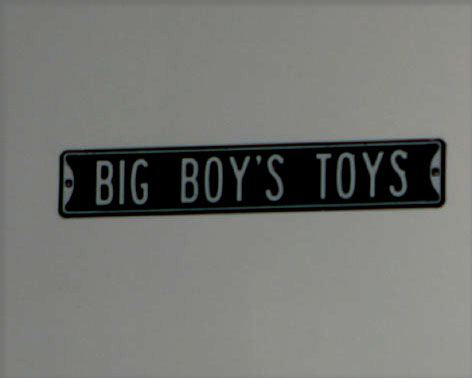 You can see on the right side the diamond plate wall with plenty of pictures on it.