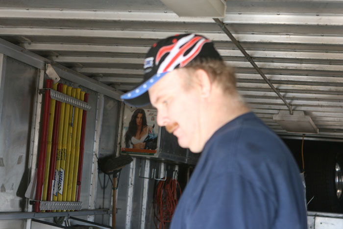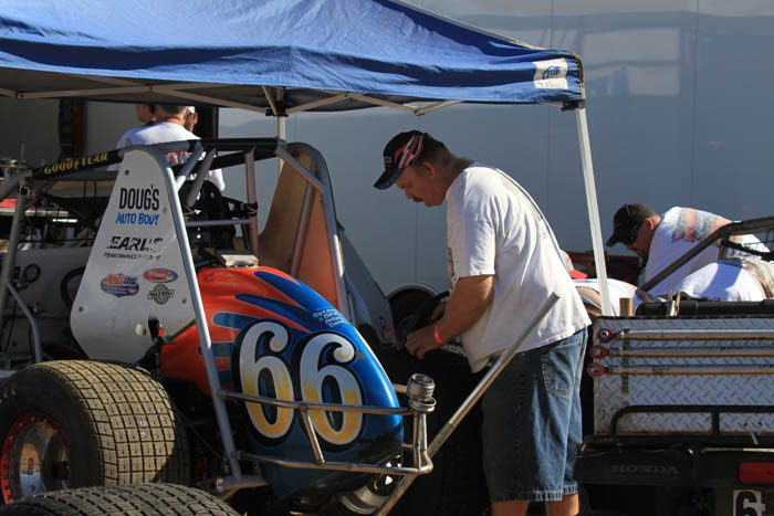 Mark Spivey works on Rickie Gaunts car.