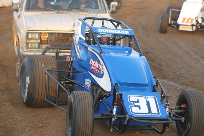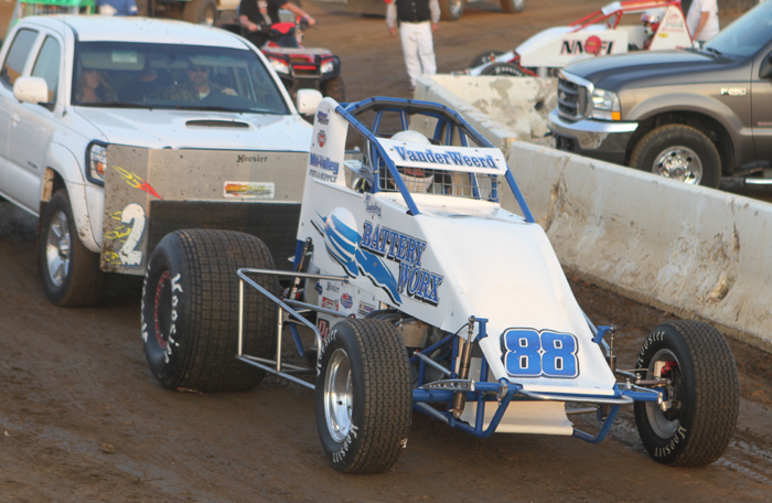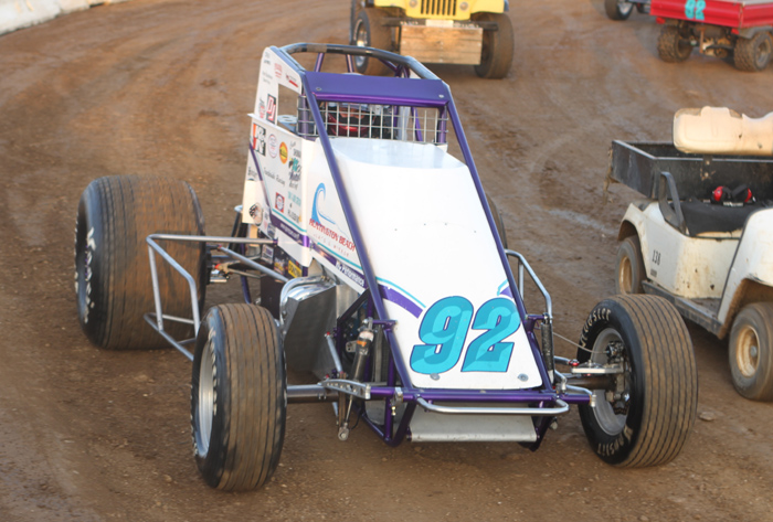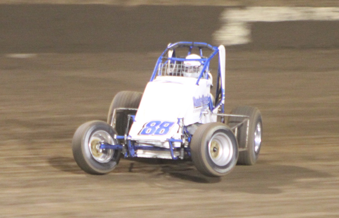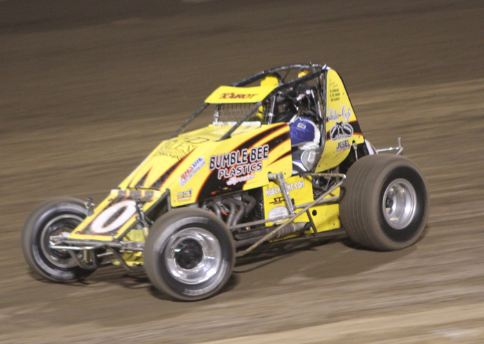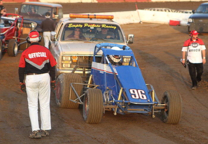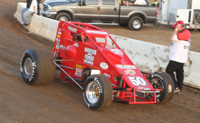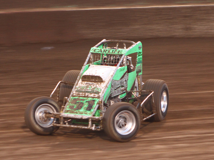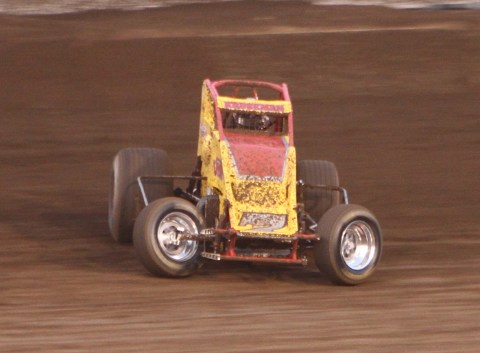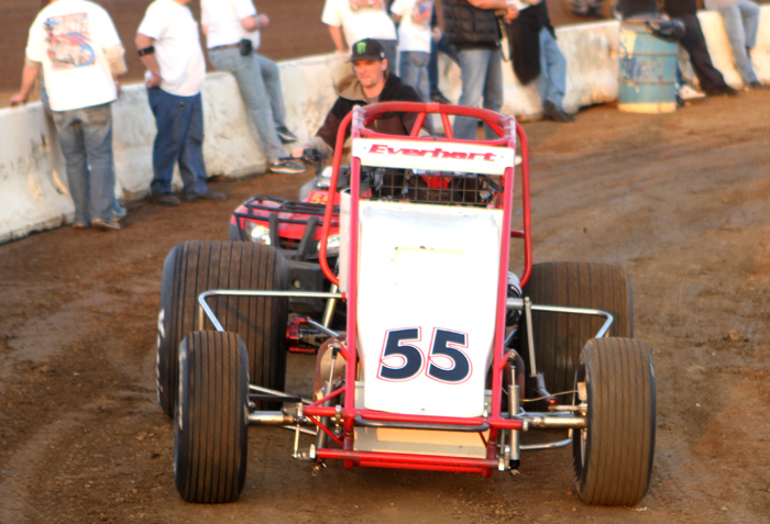 Bud Kaeding was doing fine until he got upside down in the A main.Good to see him run with us.