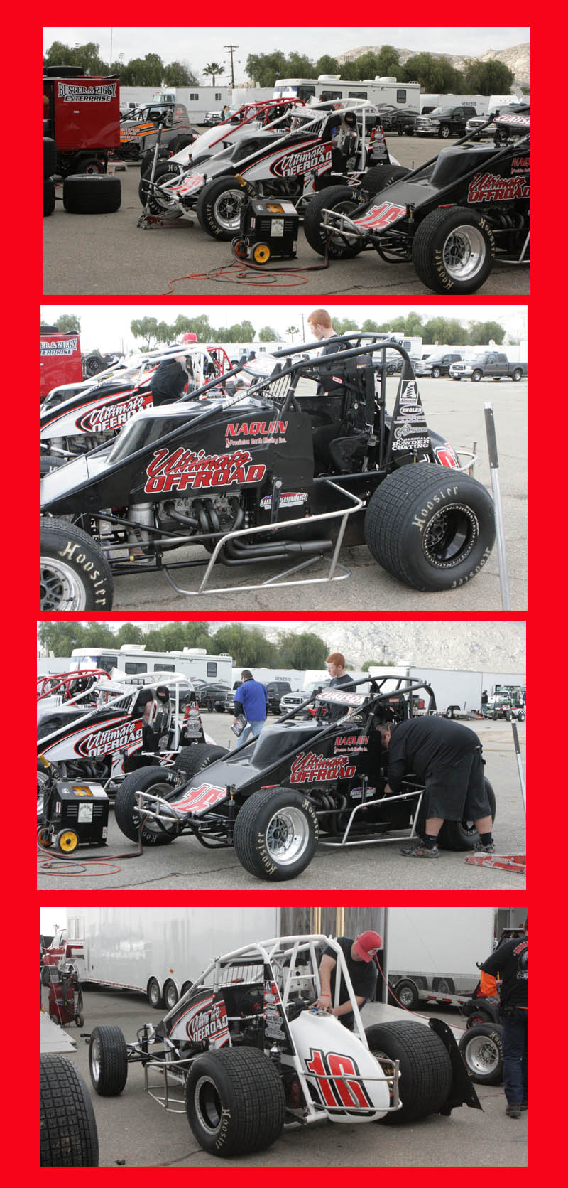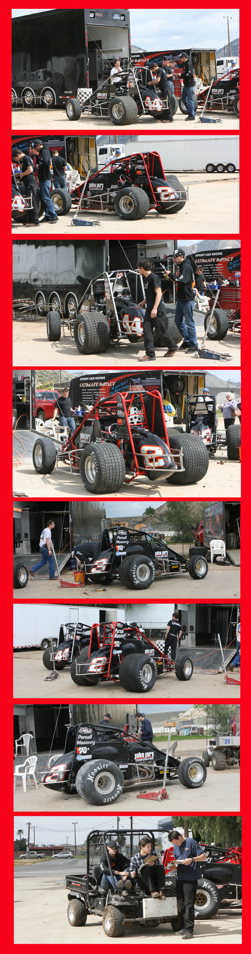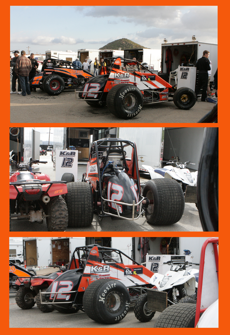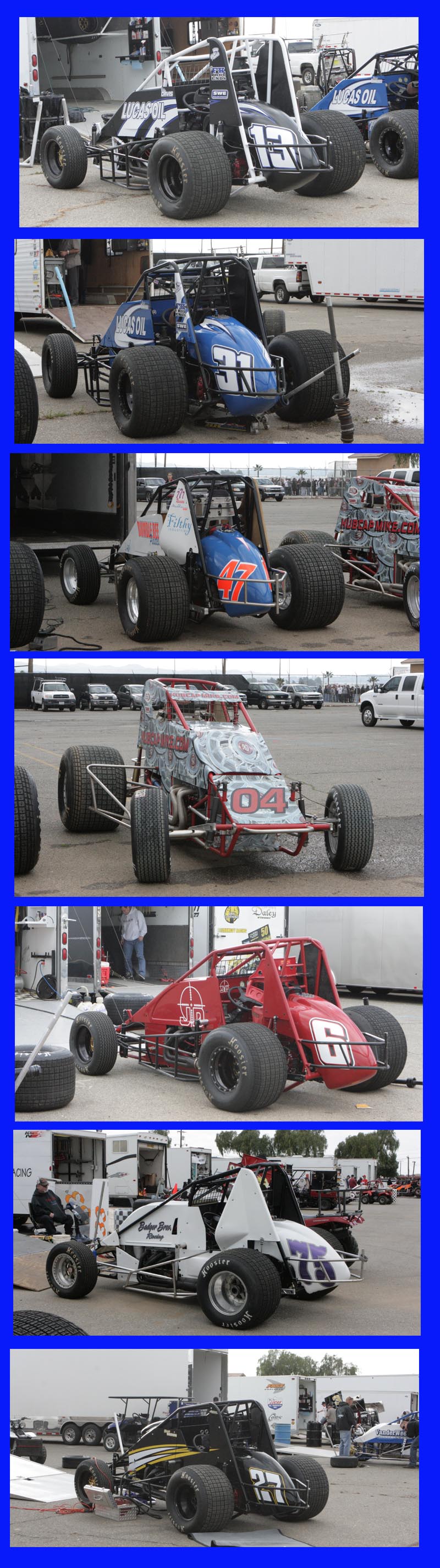 Mike Martin's cars with Himself and Bryan Clauson in them, Bryan won again on his west coast jaunt.