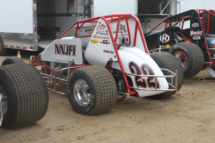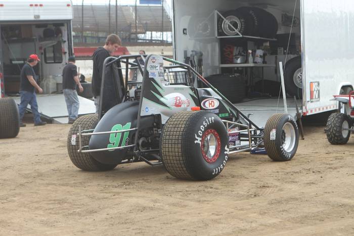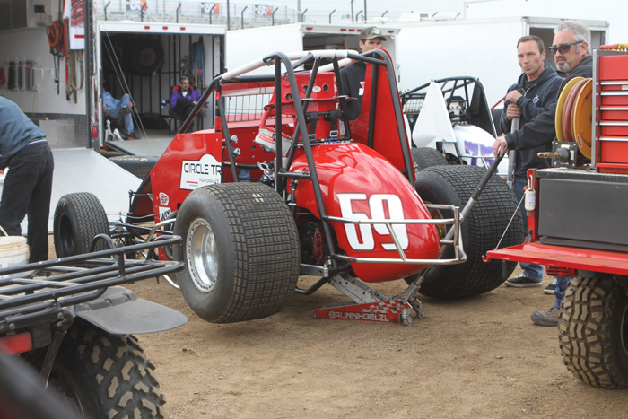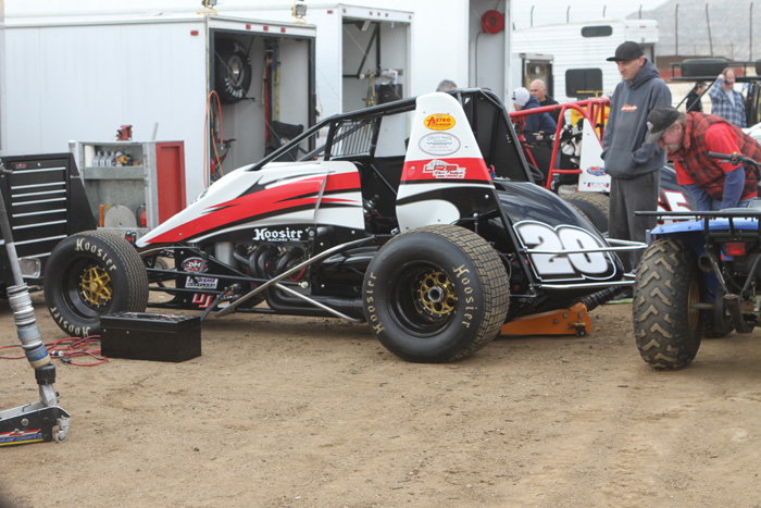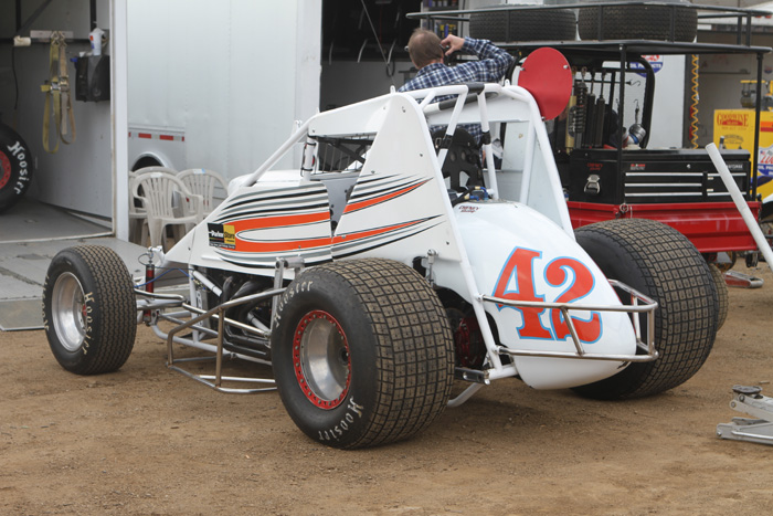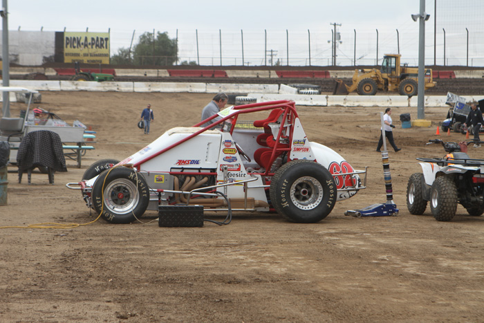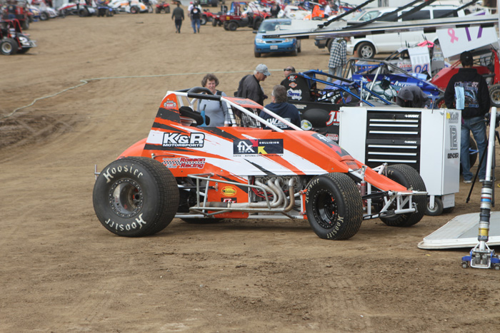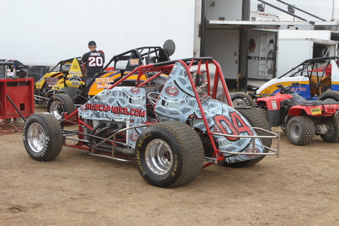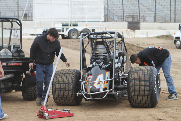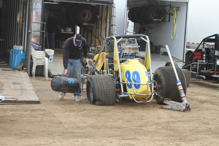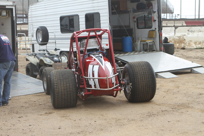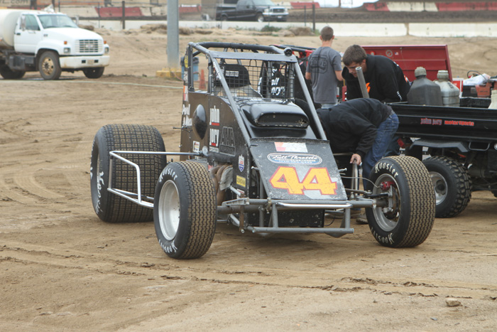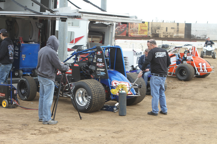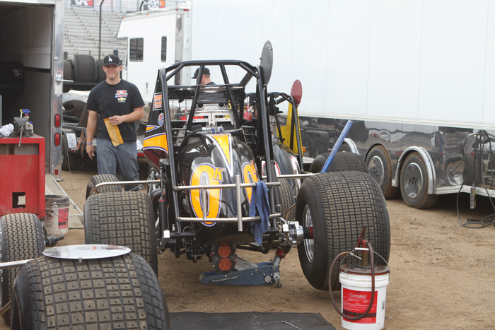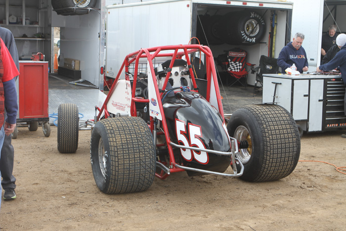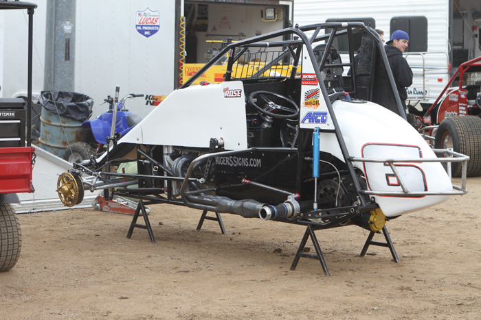 Seth Wilson has his car up on jacks here. He made the feature and ran 11th.