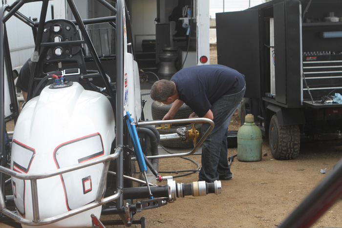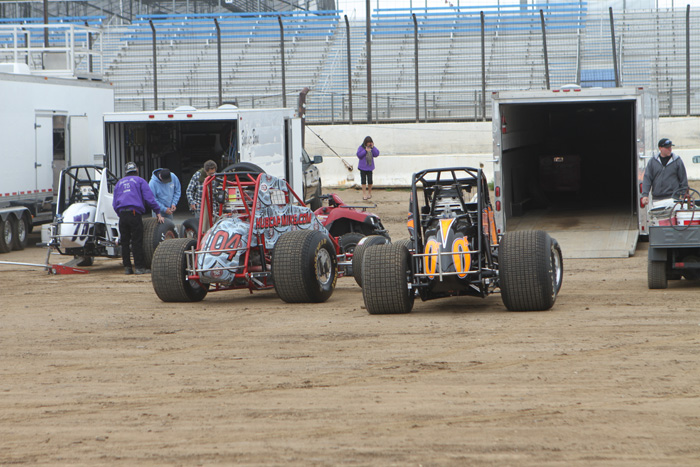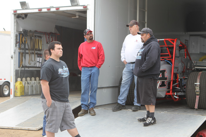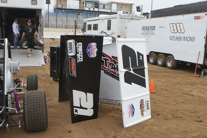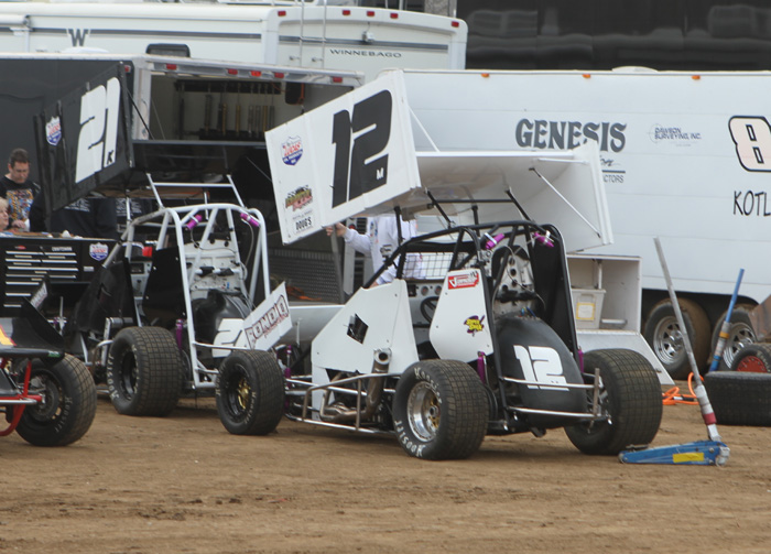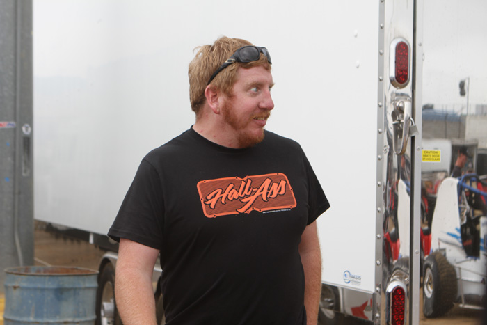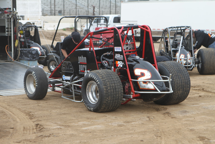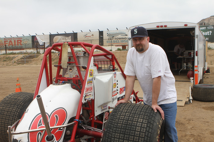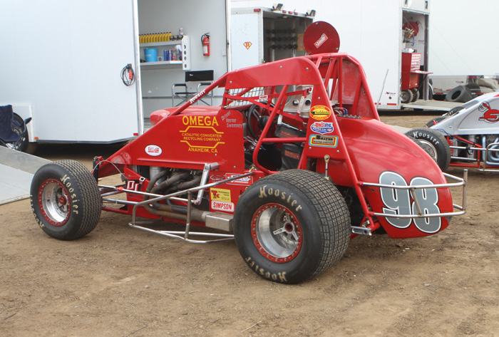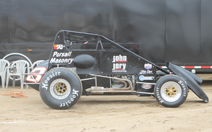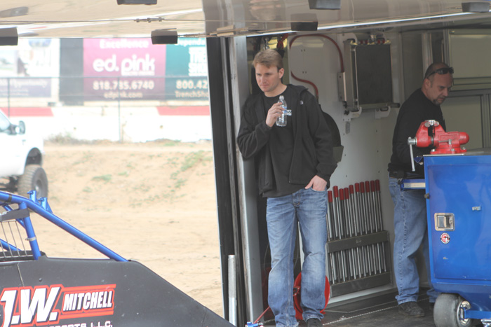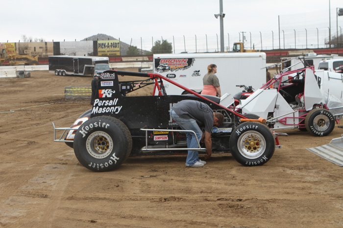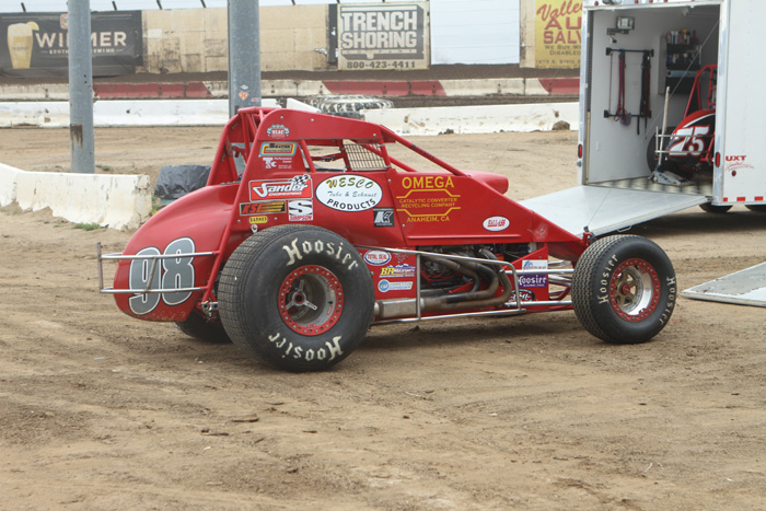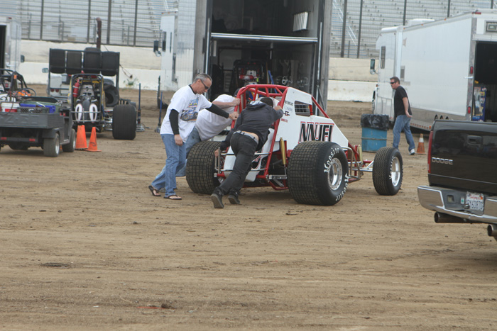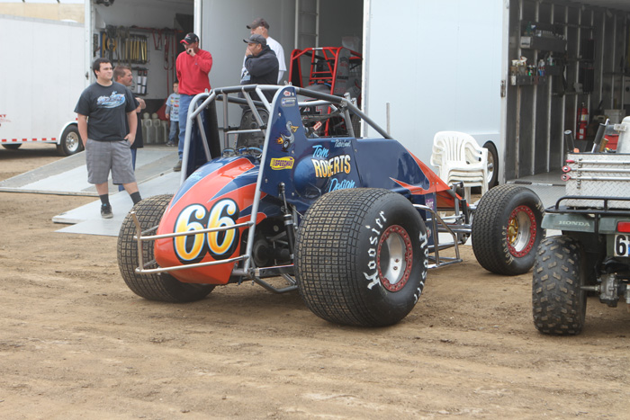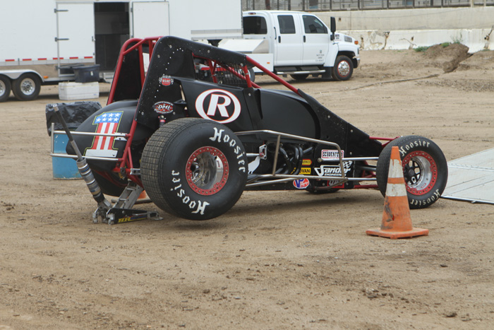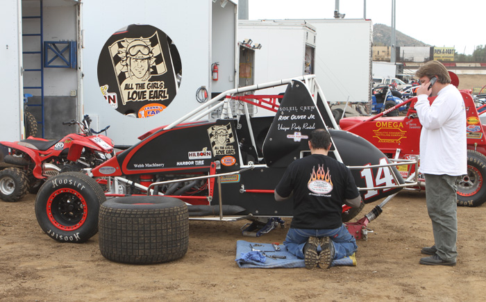 Seth Wilson has his car up on jacks here. He made the feature and ran 11th.