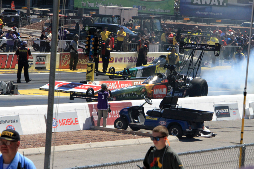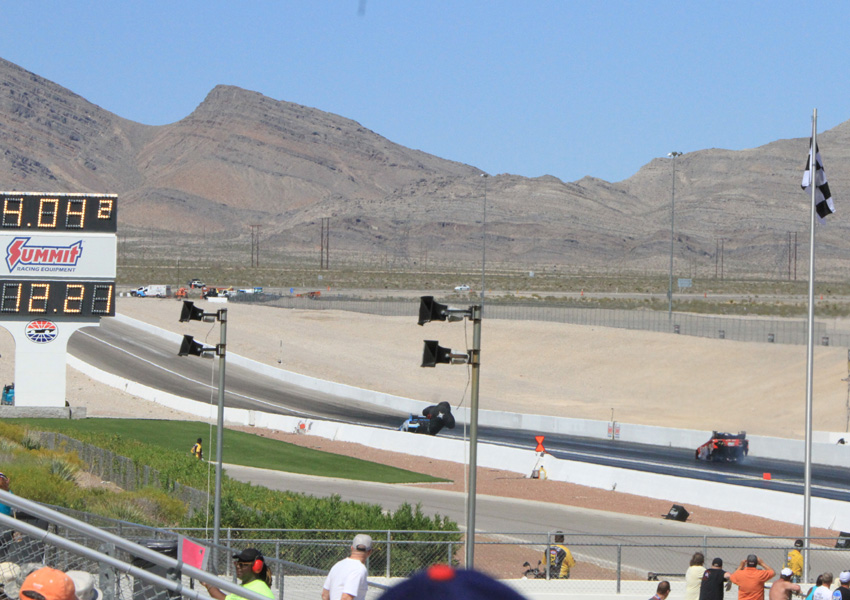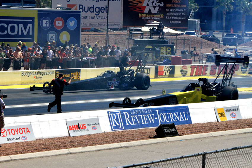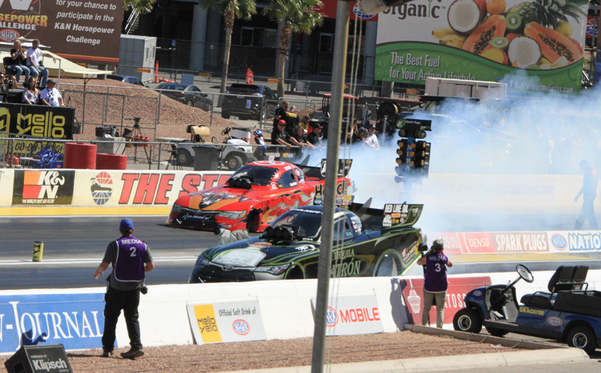 Chad Head (time 3.974 6th quick) and Alexis DeJoria (time 3.947 5th quick) take off!