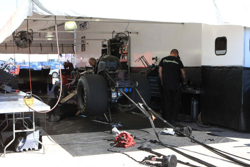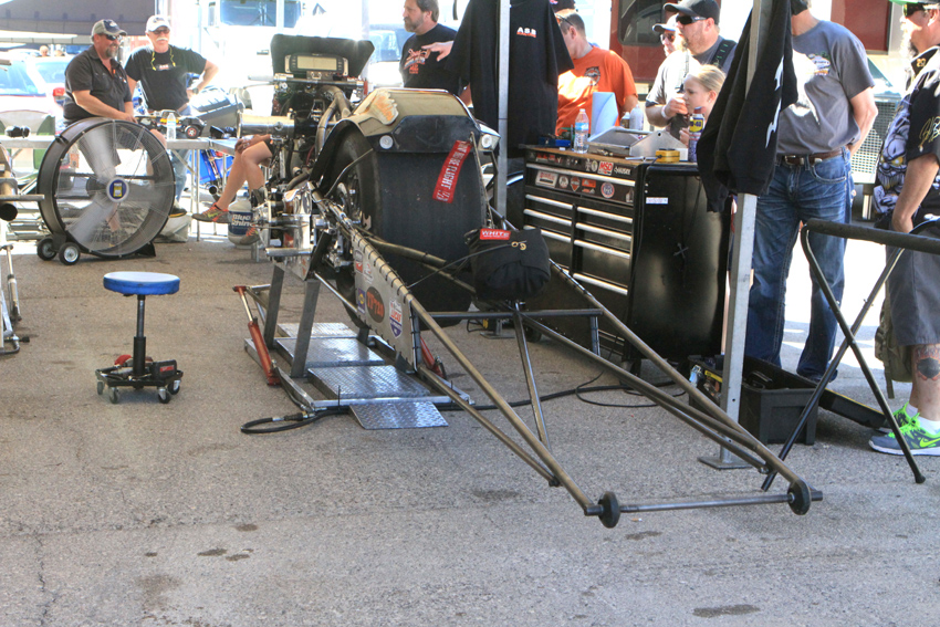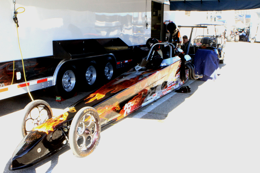 My grandson Tory found a ride in the Sharron Brothers dragster
