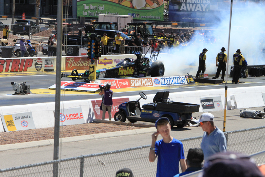 Steve Faria (timed in 4.211 and qualified 14) Steve Chrisman (timed in at 4.589 and qualified 15) smoke off the line